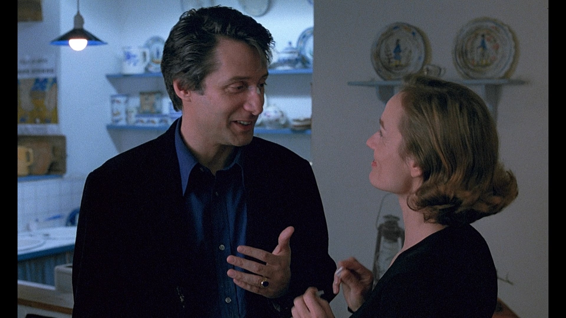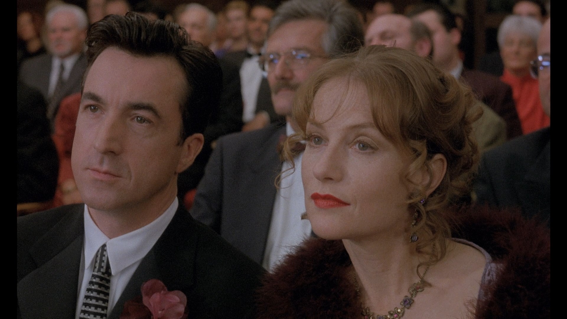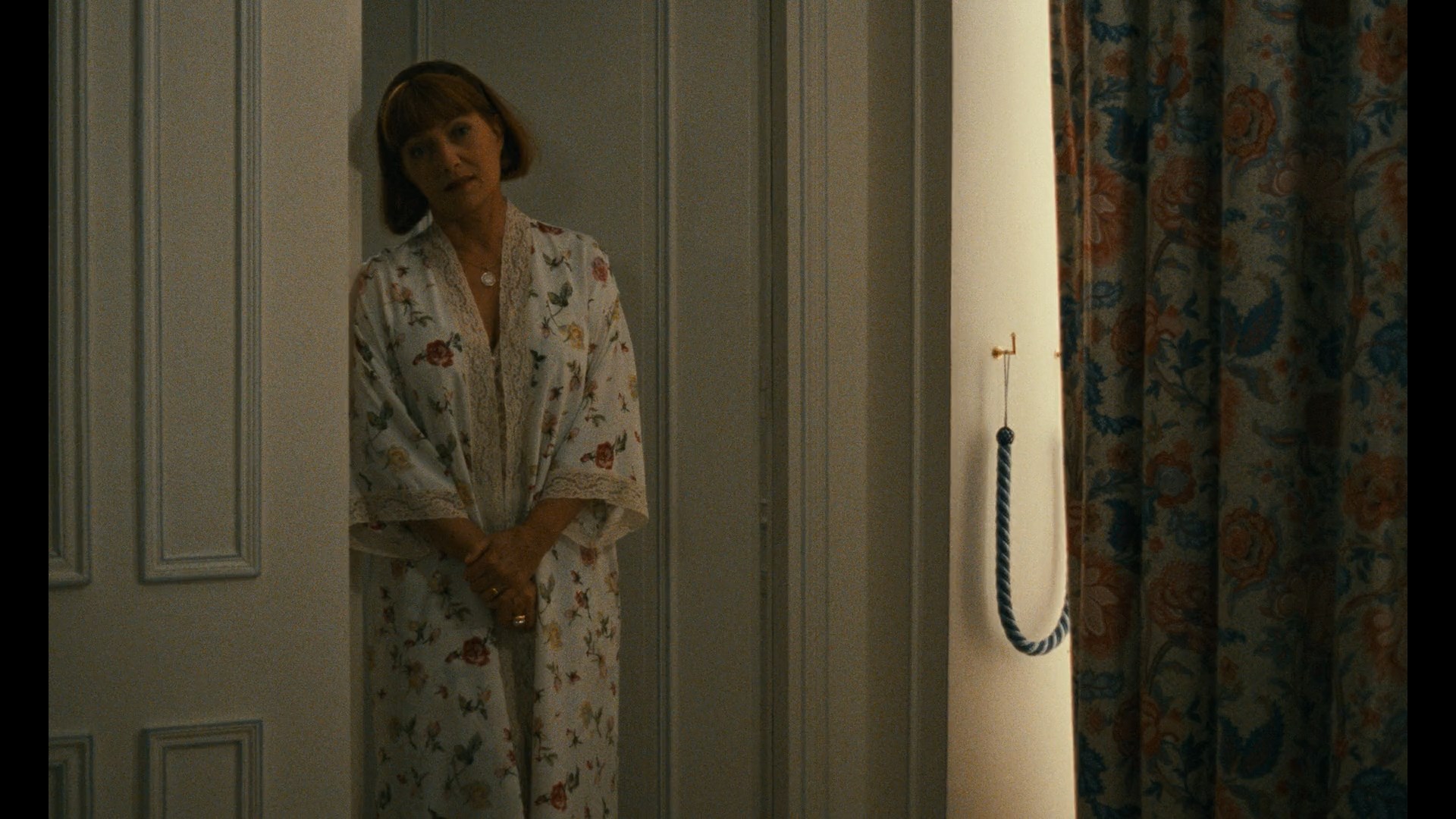 Cérémonie. Released in the U.S. by New Yorker Films both theatrically and on VHS, this eventually went over to Cohen for a pretty nice Blu-ray release in 2016 featuring a Major and Klein commentary, a reissue trailer, and a "Many Forms of Love" interview with Cluzet (42m32s) by New York Film Festival director Kent Jones covering the actor's work with Chabrol. The Arrow Blu-ray is the only one of the second batch to retain the yellow leaning, though it's toned down here relatively speaking and not that bad once your eyes get used to it after a while. Otherwise it looks good with fine detail throughout. A new commentary by Barry Forshaw and Sean Hogan helps put the film in context within Chabrol's career and really goes into the nature of how his tendency to crank out films at a rapid pace hampered his status among the auteur-centric crowd but ultimately may have helped him in the long run. In "Chabrol’s 'Soap Bubble'" (14m36s), Catherine Dousteyssier-Khoze (author of Claude Chabrol: The Aesthetics of Opacity) uses Chabrol's own term for this film (thus the title) as a jumping-off point for analyzing some of his more playful efforts like this and Blue Panther, with an exploration of how production design choices reflect his twisty stories. The Zoom conversation "Film as a Family Affair" (38m11s) features Chabrol's stepdaughter and frequent assistant, Cécile Maistre-Chabrol, chatting about her first exposure to show business through the theater, their working relationship, his pun-loving personality, and his methods on set. Also included are a Magny intro (2m28s) about the film's significance to Chabrol despite its middling box office reception in France, scene specific Chabrol commentaries (24m20s), an EPK-style vintage making-of featurette (8m22s) with the cast and crew, an interview with Huppert (25m38s) conducted by MK2 covering her first meeting with Chabrol and their working process together, the French trailer, and a stills gallery.