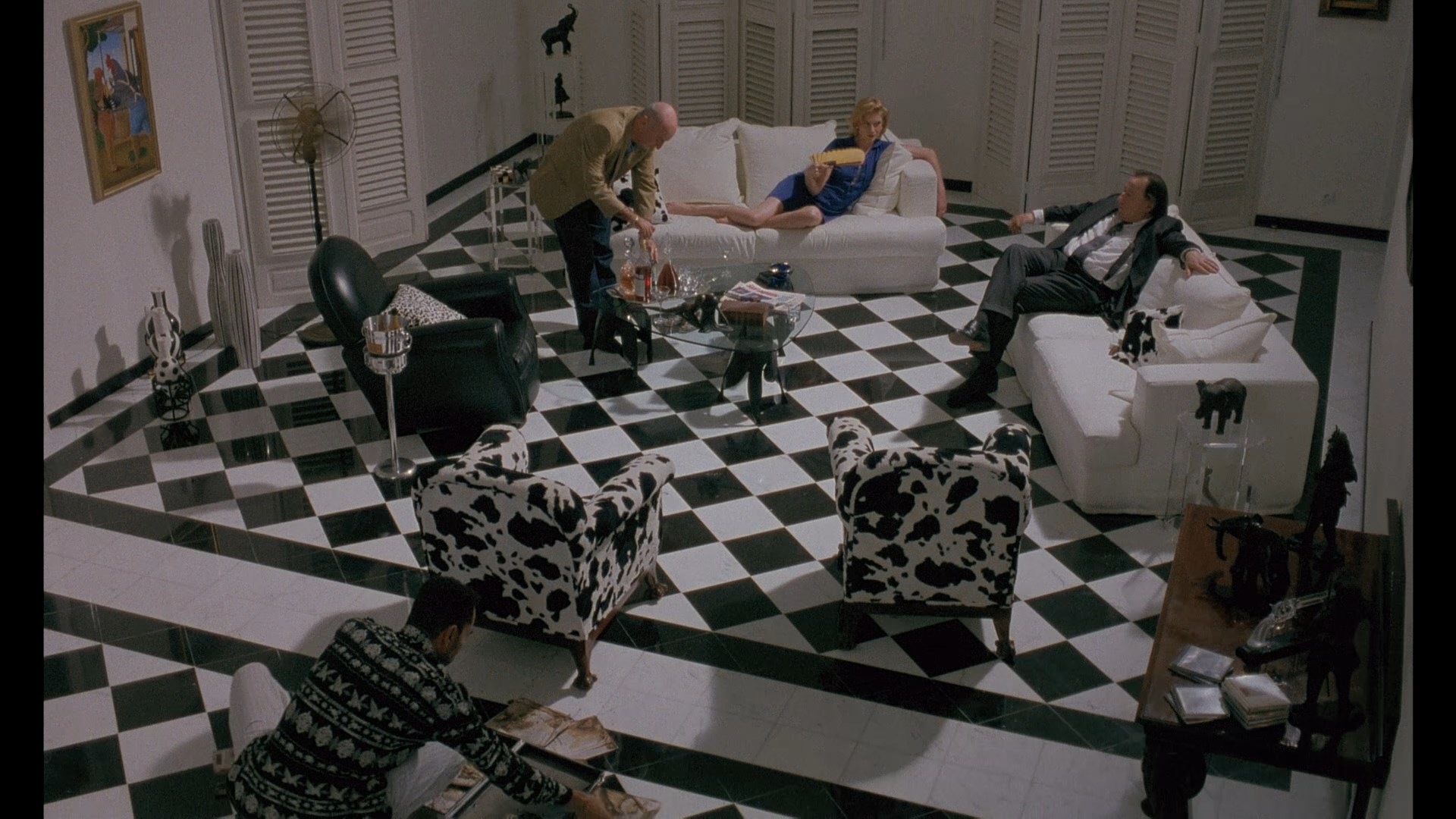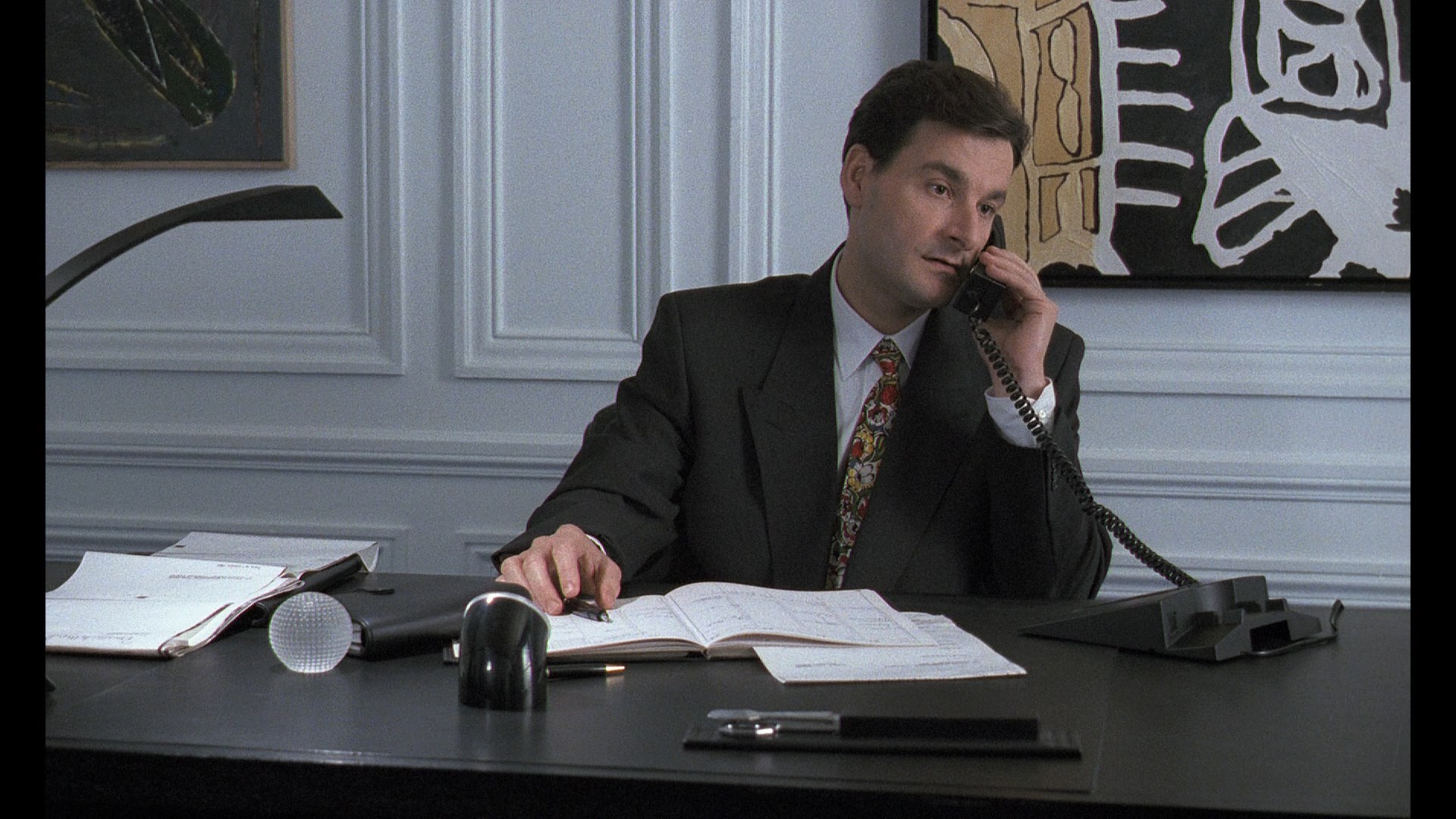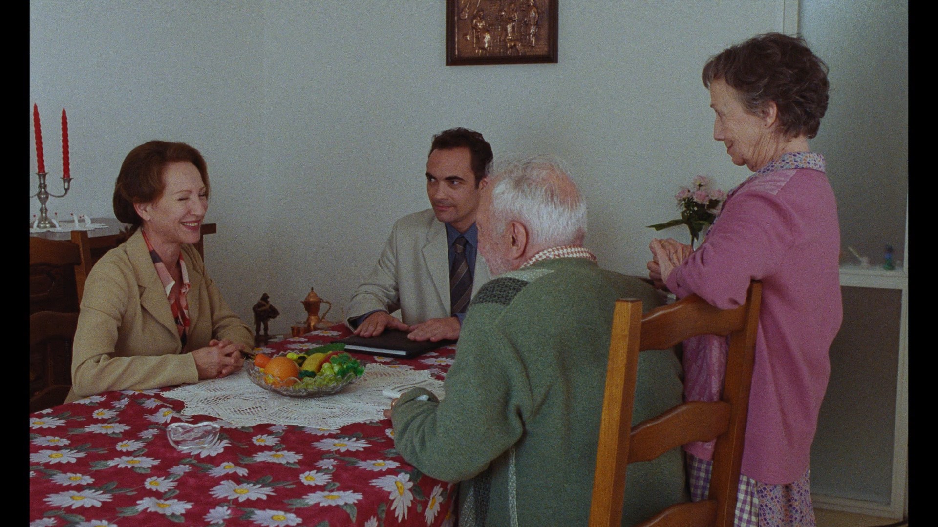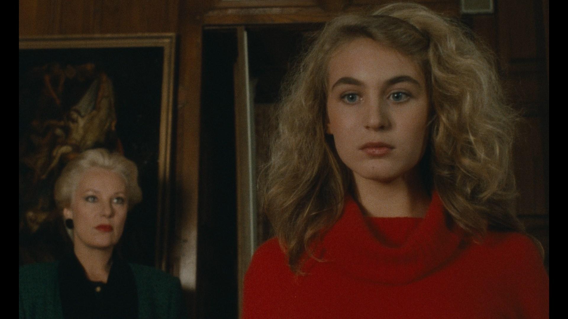 Cérémonie. Released in the U.S. by New Yorker Films both theatrically and on VHS, this eventually went over to Cohen for a pretty nice Blu-ray release in 2016 featuring a Major and Klein commentary, a reissue trailer, and a "Many Forms of Love" interview with Cluzet (42m32s) by New York Film Festival director Kent Jones covering the actor's work with Chabrol. The Arrow Blu-ray is the only one of the second batch to retain the yellow leaning, though it's toned down here relatively speaking and not that bad once your eyes get used to it after a while. Otherwise it looks good with fine detail throughout. A new commentary by Barry Forshaw and Sean Hogan helps put the film in context within Chabrol's career and really goes into the nature of how his tendency to crank out films at a rapid pace hampered his status among the auteur-centric crowd but ultimately may have helped him in the long run. In "Chabrol’s 'Soap Bubble'" (14m36s), Catherine Dousteyssier-Khoze (author of Claude Chabrol: The Aesthetics of Opacity) uses Chabrol's own term for this film (thus the title) as a jumping-off point for analyzing some of his more playful efforts like this and Blue Panther, with an exploration of how production design choices reflect his twisty stories. The Zoom conversation "Film as a Family Affair" (38m11s) features Chabrol's stepdaughter and frequent assistant, Cécile Maistre-Chabrol, chatting about her first exposure to show business through the theater, their working relationship, his pun-loving personality, and his methods on set. Also included are a Magny intro (2m28s) about the film's significance to Chabrol despite its middling box office reception in France, scene specific Chabrol commentaries (24m20s), an EPK-style vintage making-of featurette (8m22s) with the cast and crew, an interview with Huppert (25m38s) conducted by MK2 covering her first meeting with Chabrol and their working process together, the French trailer, and a stills gallery.