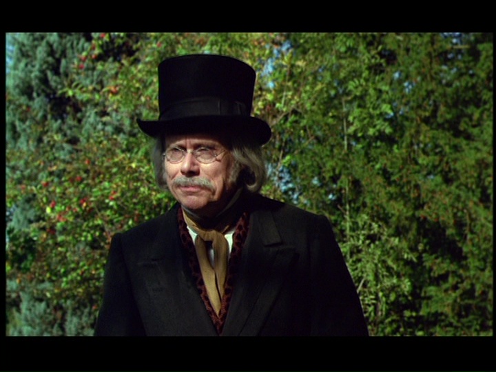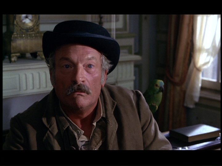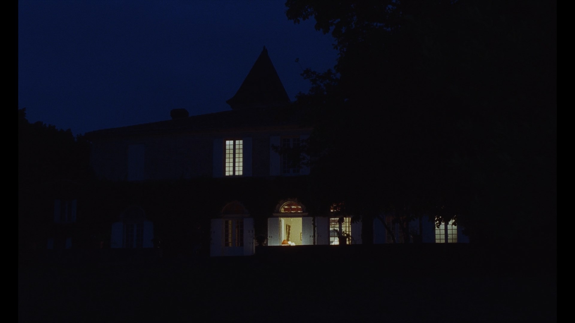 completely different slate of bonus features starting with a fine new commentary by Ben Sachs who takes up a scholarly reading of the film interpreting the symbolism of the locations and character placements, the theme of nefarious activity beneath the surface, and the ins and outs of Chabrol's personal life at the time as well as his career including the family affair mode of his work. A interview with Ian Christie (12m35s) covers his memories and appreciation of Chabrol from their time interviewing together and his thoughts on the filmmaker's work, while a complete 1994 interview between them at the BFI at the National Film Theatre (74m35s) covering his early Cahiers du cinema days (and his status as a rare native Parisian among the French New Wave gang) through his late career resurgence. Pulled from the film's French DVD release are an intro by film scholar Joël Magny (3m14s) and select scene commentaries by Chabrol (21m43s), plus you get a fantastic 1985 episode of the Swiss TV show Special Cinema (29m38s) featuring Chabrol, Poiret, and Audran talking about the film with director Francis Reusser and actress Isabel Otero. Also included are the wild French theatrical trailer (featuring a very Hitchcockian appearance by Chabrol himself) and a gallery of posters and still. As for the film itself, the transfer is considerably cleaner than the Cohen release (removing a lot of specks and scratches) with finer detail and color timing that adds a yellow bias throughout (much more on that later) and has more of an overcast look. The