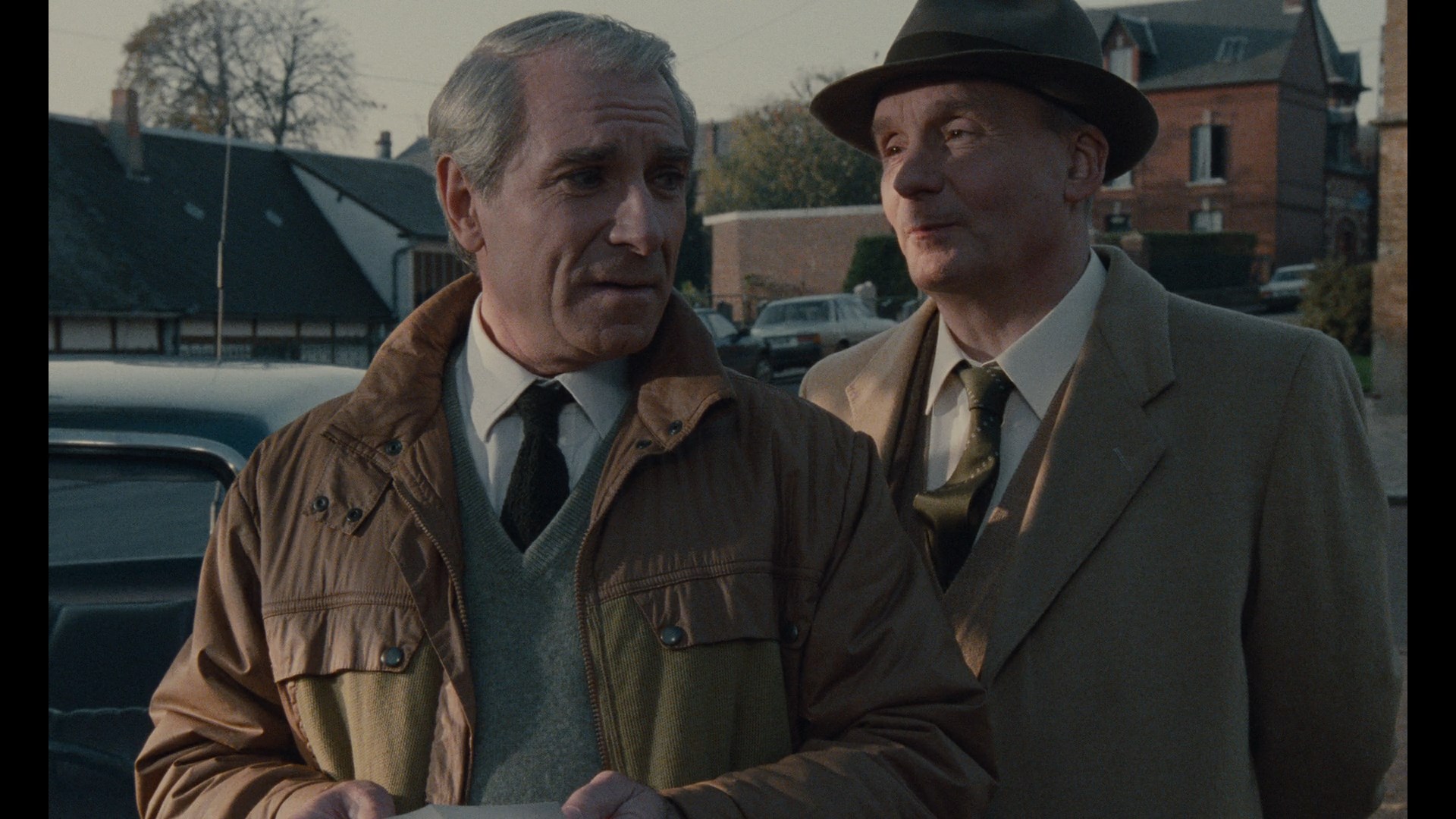 a general overview of Chabrol starting with his famous early days before honing in more on the film itself including its place as a late career entry, the overall perception of him at the time and as a member of the Nouvelle Vague, and the ramifications of the Nazi subplot (which makes this an interesting sort of fictional sequel to his harrowing documentary, The Eye of Vichy). In "Behind the Masks: Remembering Claude Chabrol" (14m30s), Agnès C. Poirier (author of Left Bank: Arts, Passion and the Rebirth of Paris 1940-1950) shares her own memories of Chabrol including many of his observations about life and art as well as his passion as a gourmand. Then you get an archival Magny intro (3m31s), more select scene Chabrol commentaries (49m29s), an archival behind-the-scenes featurette (25m36s) featuring interviews with Chabrol and the cast, an archival interview with screenwriter Catherine Eliacheff (24m47s) noting the points of similarity between the later films including the prominent roles for women, the French trailer, and an image gallery. Both sets (with artwork designed by Tony Stella) each come with an 80-page collector's booklet featuring essays from Martyn Conterio, Ellinger, Philip Kemp, Sam Wigley, Hogan, Brad Stevens, Dousteyessier-Khoze, Heller-Nicholas, and Pamela Hutchinson, along with archival material.COP AU VIN: Arrow Video Blu-ray