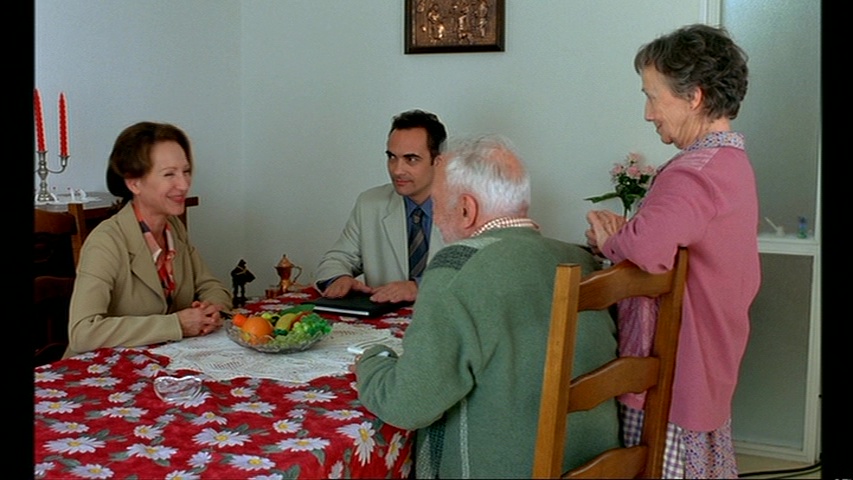 2003's The Flower of Evil (La fleur du mal), which is actually a lot more cheerful and ultimately benign than the title might make you believe. Here the great Nathalie Baye heads a lively ensemble cast as Anne, the middle-aged wife in a wine-loving family in Bourdeaux who opens some skeletons in the closet when she decides to run for local public office. Essentially the gatekeeper for the family's security is the perpetually smiling eldest member, Aunt Line (Flon), while young lawyer François (Magimel) has just returned home from a years-long stay in America. He also has a very romantic attraction to his stepsister, psych student Michèle (Doutey), while old secrets involving Nazi sympathies within the family are tied to rumors of a possible homicide in their family tree. All of that comes to a head when poison pen leaflets start turning up that seem to be sabotaging Anne's campaign... and as we well know from the opening credits, a dead body's going to turn up sooner or later.