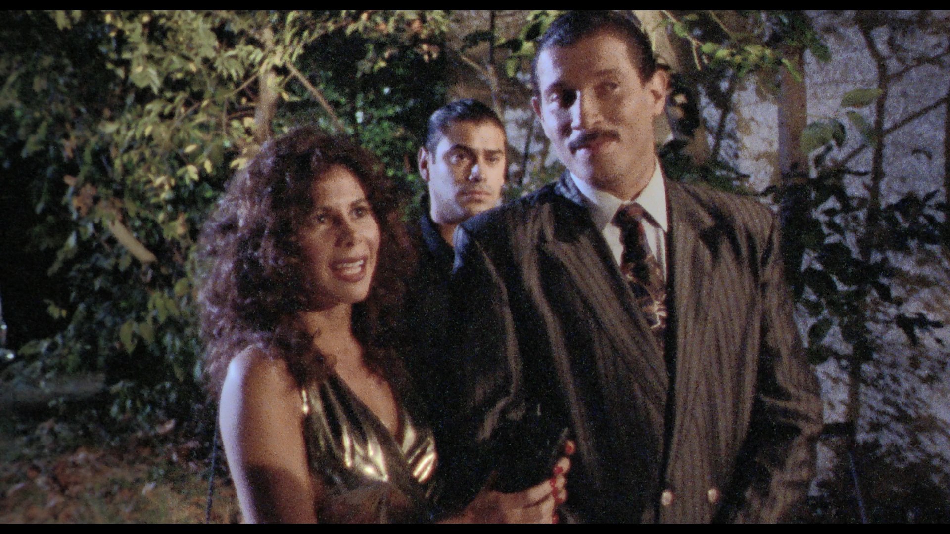 directing (or lack thereof) with Hauser, the process of revisiting it for those two subsequent versions which look and feel so different from each other, the themes he wanted to tackle ranging from police corruption to domestic violence, the spooky real-life Satanic incident with his limo driver that inspired the story, and the various found locations that came in handy throughout the shoot. Tucked away in the extras are Road to Revenge (74m57s) and GetEven (89m30s), both taken from the tape masters and looking fine for what they are in native standard def. Yes, you absolutely have to watch all three cuts, with GetEven in particular extrapolating on the whole martial arts concept to a delirious degree. (Fortunately they all end with the same music choice.) A video trailer for GetEven is also included.