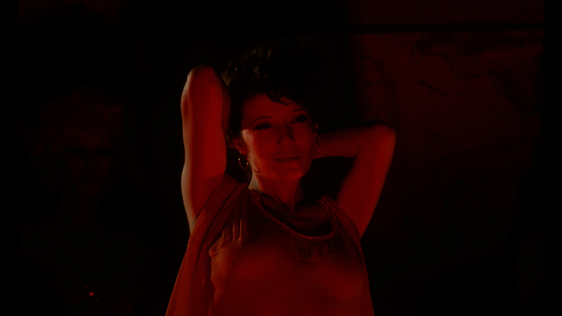 "Elsewhere Man" (27m42s), author Matthieu Orléan extrapolates more on Vecchiali, his own film production company, his possible views on pornography, and the impact he had in cineaste circles despite not being as famous as peers like Truffaut. In "Noir D'Amour" (24m), screenwriter Noël Simsolo recalls meeting Vecchiali in the '60s due to similar cinematic tastes, their crafty collaborative process to get state subsidies, and the idea exchange that gave birth to this film. "A Remedy for Chaos" (18m45s) features Mézières herself talking about getting her first big break with Jean-Pierre Mocky on the great No Pockets in a Shroud, her deep attraction to show business, being cast in this film at Simsolo's suggestion, using Humphrey Bogart as the inspiration for her wardrobe, her giddiness at shooting that insane climax, and later working with Andrzej Zulawski. Finally in "The Prodigal Son" (11m31s), actor Jean-Christophe Bouvet gives a great look back at how he got into the business through André Téchiné, his insistence on getting naked in his movies, his desire to become a director, the sexual freedom in the air after 1968, and his own perception of his character's psychology. Finally the disc wraps up with a new U.S. trailer edited by Nathan Boone.
