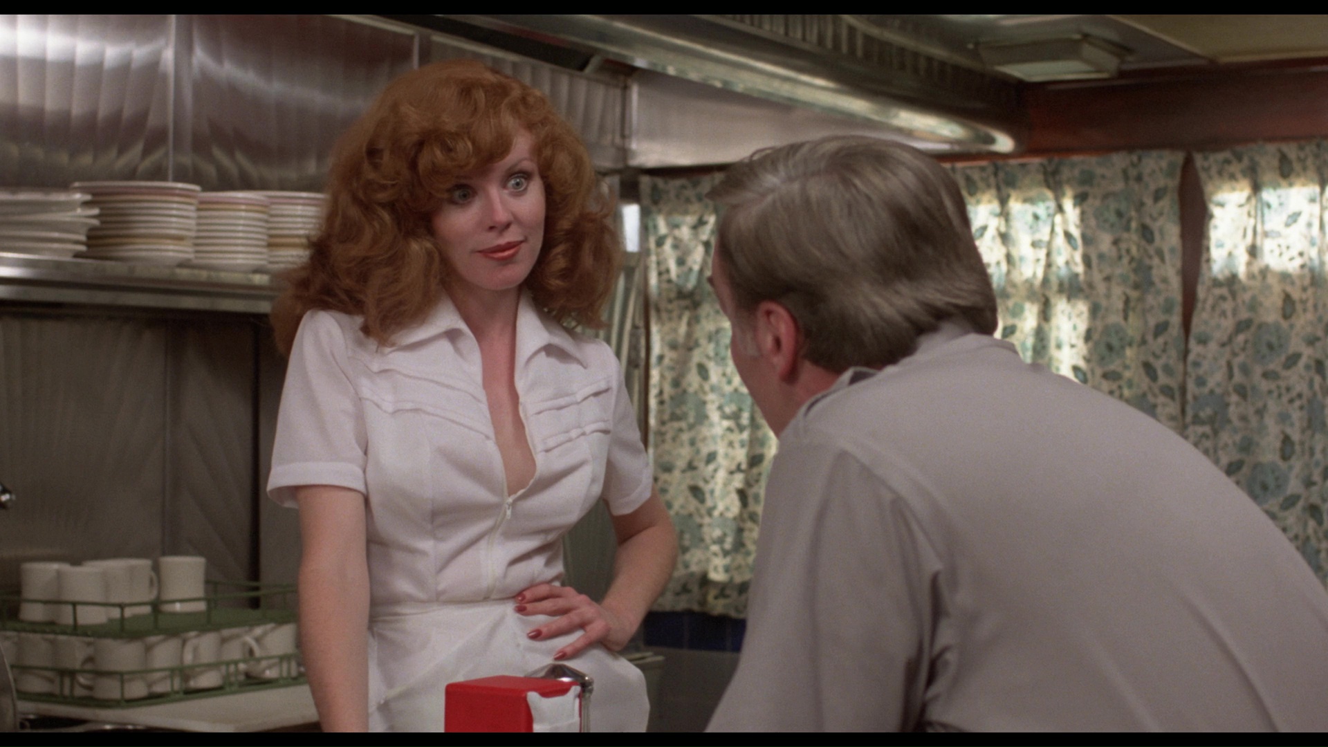 but it's still vastly superior to the DVD throughout. It's also longer than earlier versions with an entire scene in the diner right after the main titles. The DTS-HD MA 1.0 English mono track is also much clearer and cleaner than before, with optional English SDH subtitles provided. In addition to the preexisting Albright commentary, the film can also be played with a new commentary featuring director Max Kalmanowicz in conversation with Vinegar Syndrome's Joe Rubin. Right off the bat it's an interesting one as he chats about adding the opening explanatory scene after nuclear power panics like the Three Mile Island disaster, the restoration of the missing scene, his professional ties to Sean S. Cunningham (which ties into how Harry Manfredini scored this film), the story behind that out of nowhere bodybuilder by the pool, the concentration camp connection to the film's original title, the thankfully humane way they achieved that Doberman scene, and more. All of the prior featurettes (Albright video interview, "Making The Children," the musical, "Memories of The Children") are ported over here, with two new ones added. The outrageously candid "Childhood Memories: Making The Children" (17m4s) features Platt and Carlton Albright chatting about an alcoholism issue during production, getting Manfredini to score the film, the attempted casting of Kevin McCarthy, and the presence of a coke dealer in the film. (Not surprisingly, there's a disclaimer at the beginning of this one.) "Return to Ravensback" (9m42s) features Fangoria's Michael Gingold touring the familiar locales from the film including the story behind the diner and various spots around New Jersey. There's also an audio segment (2m42s) for a lost scene that... uh, doesn't seem like much of a loss given the caliber of acting.