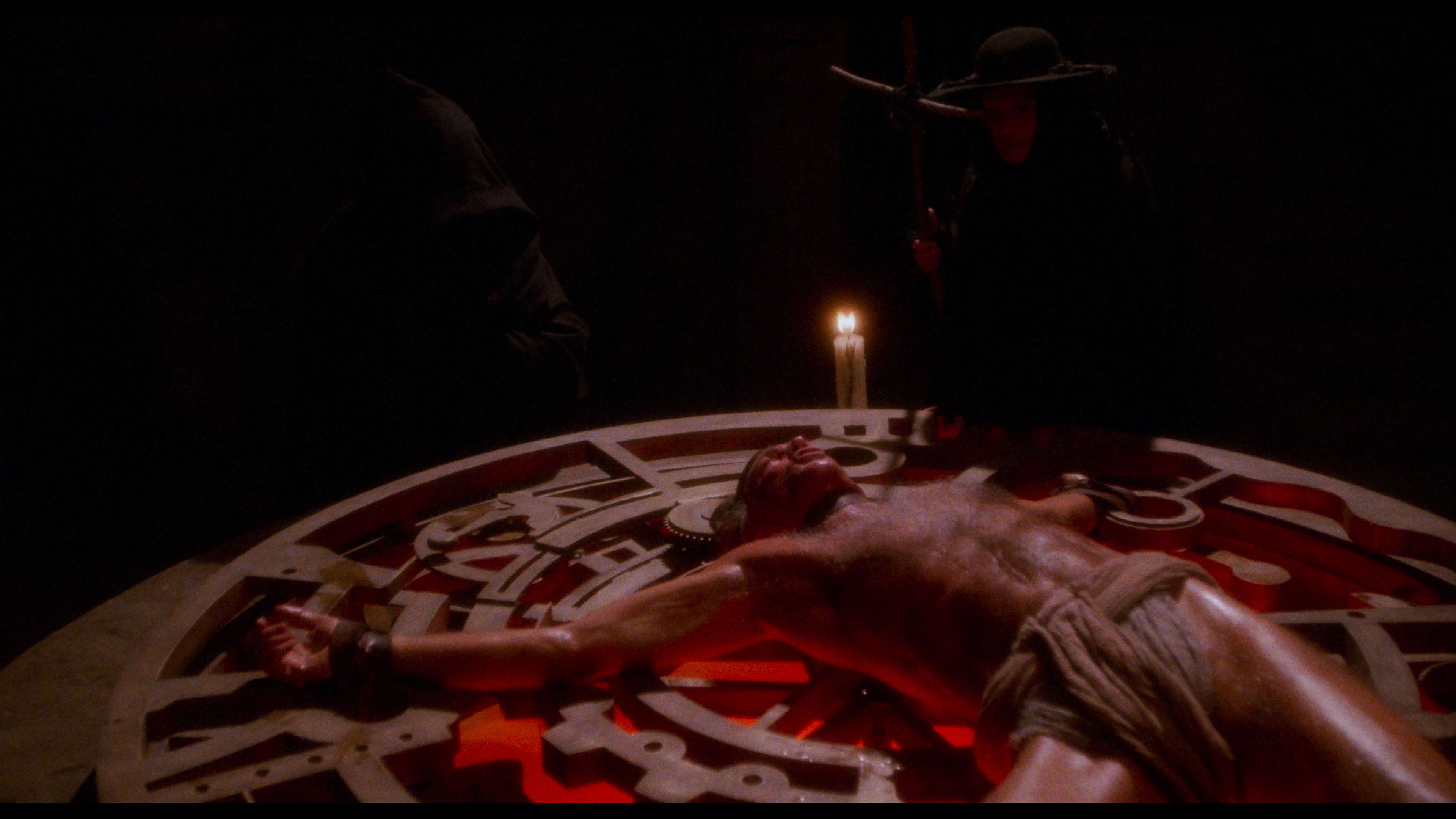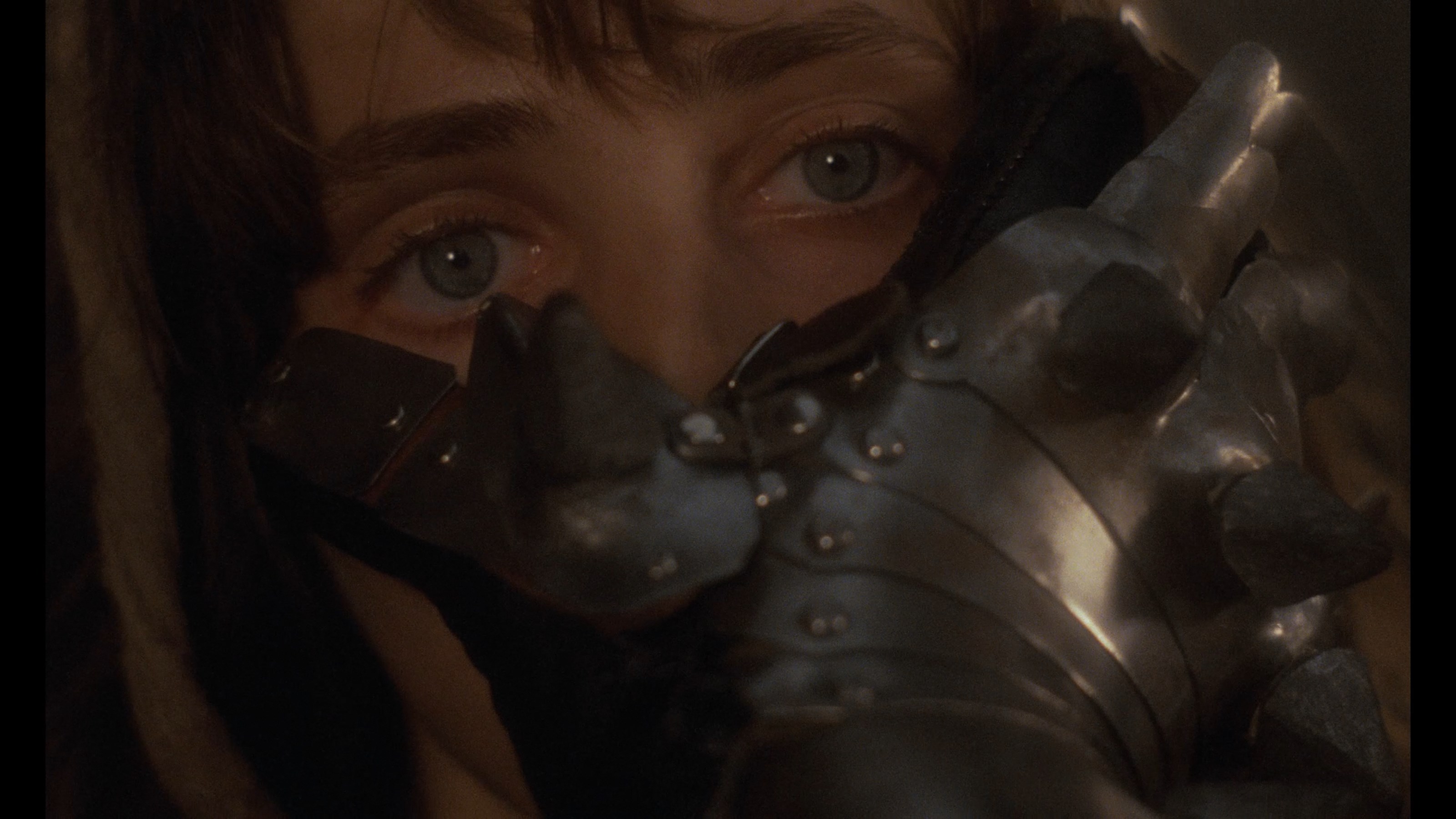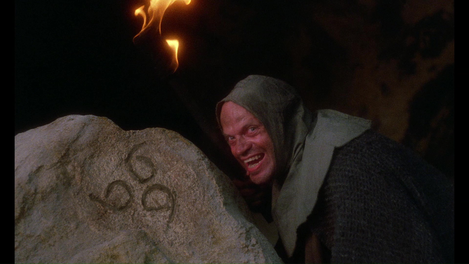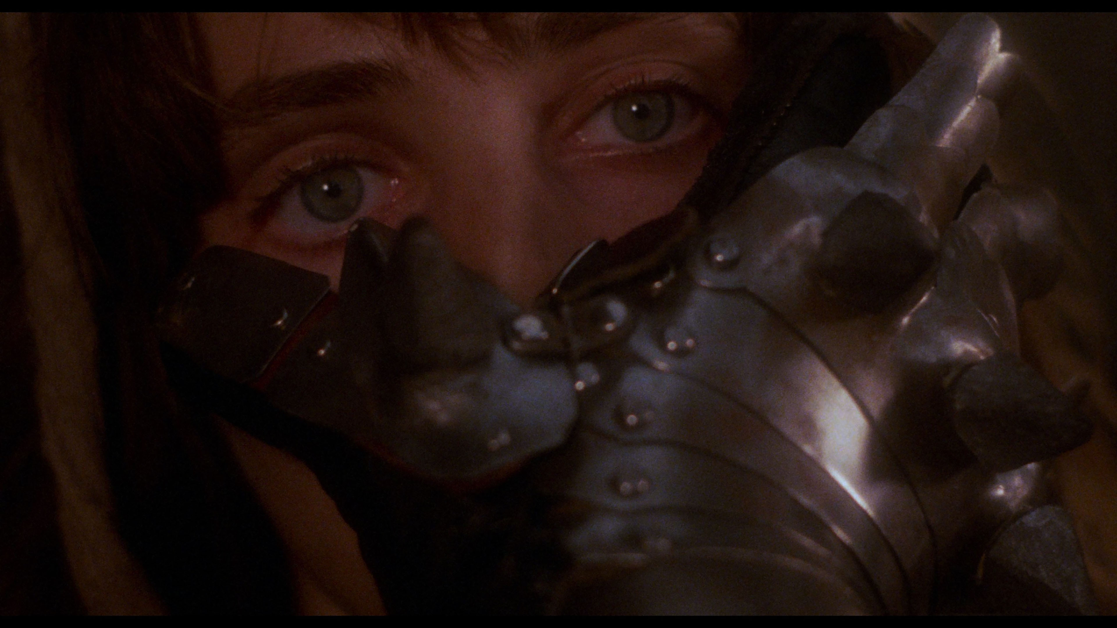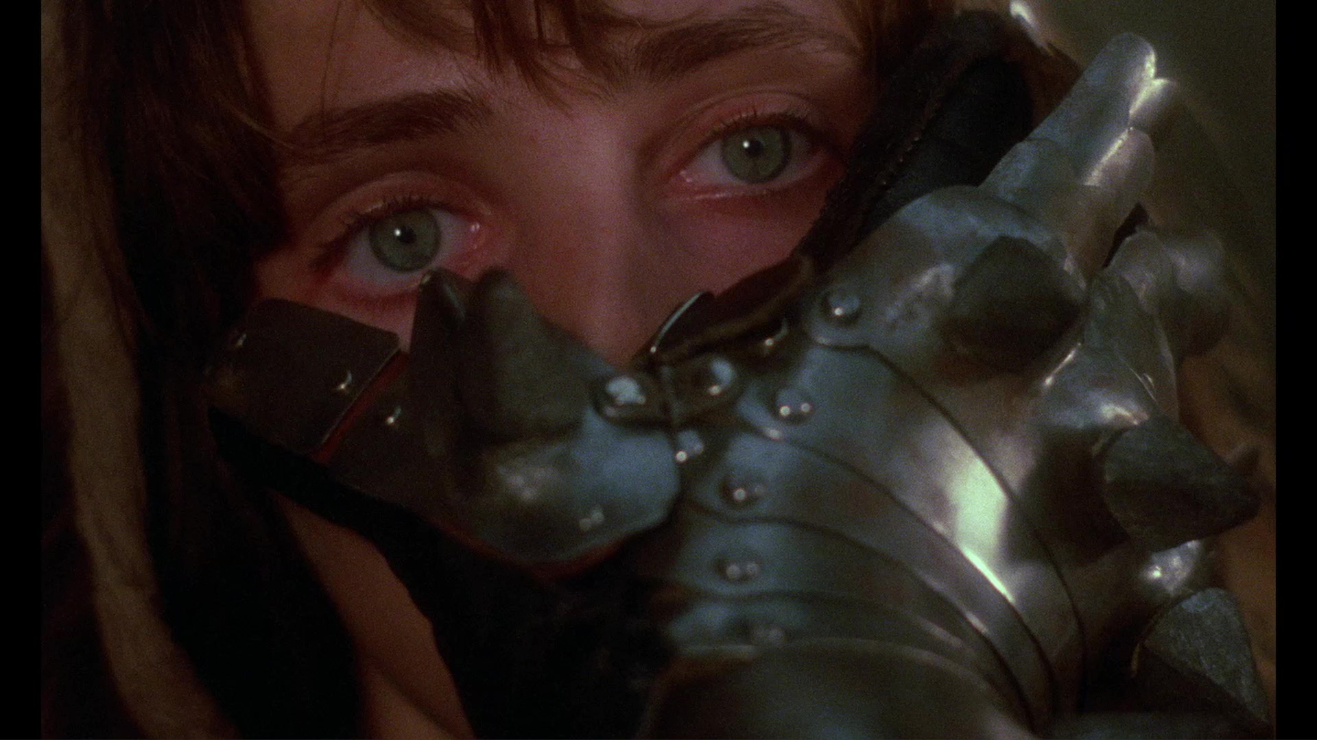 In 2023, Severin Films bowed the film on 4K UHD as part of a three-disc set also containing a new Blu-ray edition and a soundtrack CD (plus a webstore exclusive slipcover and a booklet with an essay by Claire Donner). The UHD features the main feature with DTS-HD MA English 2.0 stereo and Italian 2.0 mono options with optional English subtitles, as well as a shockingly robust 5.1 English track that's easily the clearest and most energetic this film has sounded to date. The film is matted here at 1.85:1, which works as well as the other framing options out there, and looks excellent here with the most vivid and convincing color timing to date. The UHD also features the trailer, which is present on the Blu-ray along with a huge batch of featurettes both old and new. Ported over from the Scorpion release but with new credits are "The Mystery of the Cathedrals" (19m46s) with Soavi, "Alchemical Possession" (12m41s) with Dario Argento, "Lotte" (8m36s) with Asia Argento, "Father Giovanni" (14m14s) with Radice, "Holy Ground" (9m46s) with Casagni, "Building the Church" (20m46s) with Geleng, and "The Eleventh Commandment" (13m18s), a redo of the Franco Ferrini interview with much better optional English subtitles. The six new featurettes begin with "The Ghostwriter" (18m36s) with co-screenwriter Dardano Sacchetti talking about the project's evolution during and post-Lamberto Bava as well as the process of getting horror films off the ground by that rockier point in the industry. Perhaps the most valuable addition here is "Here Comes the Bride" (10m56s) with Antonella Vitale finally going in front of the camera, warmly recalling how her two big effects sequences were executed involving the gigantic wedding dress and, later on, lots of pumps and latex appliances on her face. "A Demon Named Evan" (25m37s) is a new, different interview with Tomas Arana, going over his fondness for the film and the crazier stories he's shared (especially involving Chaliapin). Effects legend Sergio Stivaletti comes next in "Monsters and Demons" (19m41s) covering the menagerie of creatures he had to make for the film and the artistic inspirations Soavi pointed to from fantasy paintings and medieval artwork that he wanted to incorporate. Then in "The Right-Hand Man" (16m50s), assistant director Claudio Lattanzi recalls the daunting nature of the production in Hamburg and Budapest with lots of challenges involving the many actors, scenes, and intricate visual tricks needed to pull it off. Finally Profondo Argento author Alan Jones gives a short summation of the film's genesis and evolution in "Return To The Land Of The Demons" (5m59s), praising the end result while alluding to a few gossipy bits along the way.