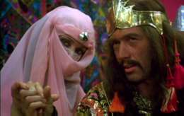 In a time and place "that never was and always will be," fluffy-haired fighter Cord (Cooper) is disqualified in combat by the powerful White Robe (McDowall), who hopes to find a fighter powerful enough to face a powerful opposing wizard, Zetan (Lee), who possessed a powerful Book of Enlightenment. Cord believes he's still the man for the job and sets off of his own accord, soon running into a colorful cast of characters including a blind mystic who use his flute as a fighting weapon, a musteacheoied sheik, the savage Monkey Man, and a black-clad figure (credited as Death), all played by Carradine. He also takes time out to bed down a beautiful maiden (Creer) before finally reaching his destination, where a very Zen surprise waits in store.