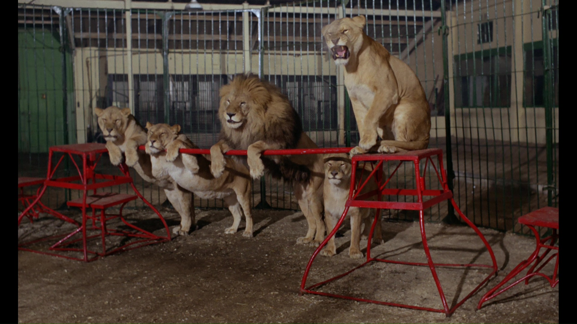 traces the loot and the getaway driver to the Barberini circus, where the multitude of suspects includes a facially-mauled lion tamer named Gregor (Lee) and a relentless main ringmaster, Carl (Drache). Soon people are getting bumped off one by one over the hidden money, and it’s up to the cops to unmask the culprit before he gets away for good.