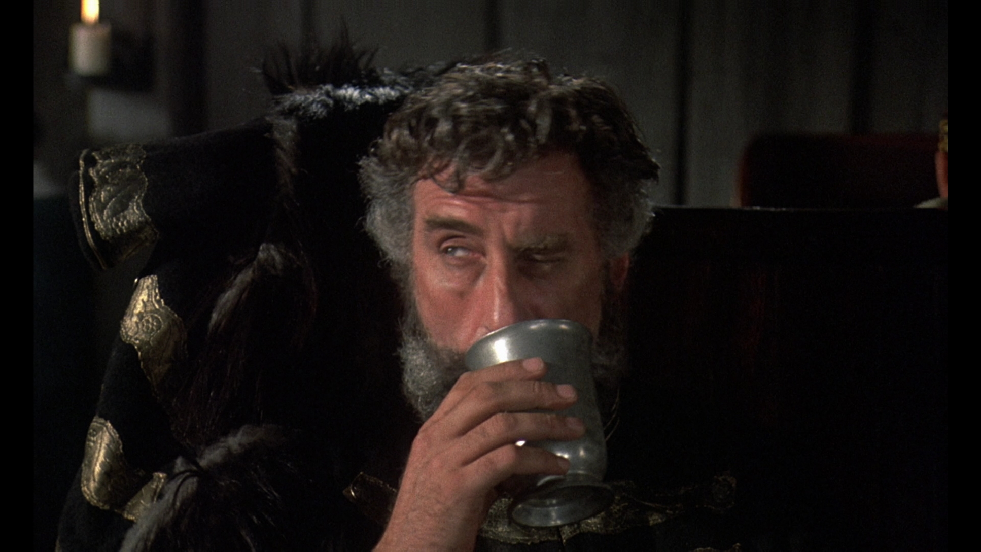 Given the subject matter, the Hammer film is surprisingly restrained for the most part as it charts the increasing savagery of our anti-heroine, here renamed Countess Elisabeth Nodosheen. Suffering mightily from the ravages of age, the imperious aristrocrat dominates the peasants with her vicious will and manipulates her lover, Captain Dobi (Zulu's Green), into helping her procure young girls after discovering by chance that spilled virgin blood can temporarily make her young and beautiful. With her appearance radically changed, the Countess poses as her own daughter, Ilona (Down), who is traveling abroad; this disguise allows her to romance the handsome Imre Toth (Elès), who has inherited a portion of her