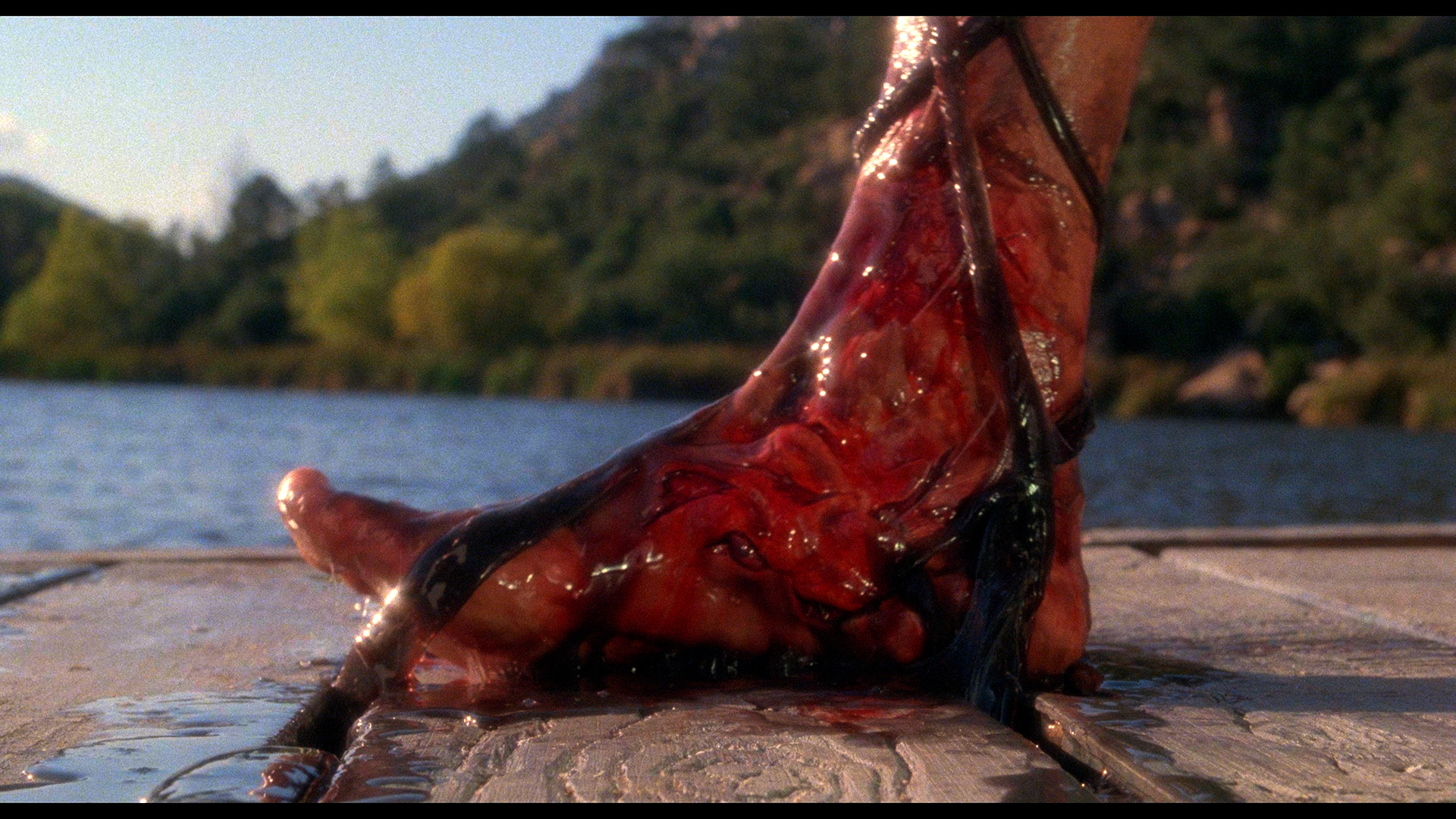 In 2004, Anchor Bay revisited the title as a Divimax (i.e., high bit-rate) release featuring the trailer, a DVD-Rom screenplay, galleries of storyboards and publicity stills, a lively commentary with Gornick and Perry Martin, and "Nightmares in Foam Rubber" (32m4s) with future makeup superstars Howard Berger and Greg Nicotero about their days as "kids" hopping between Arizona and Maine to come up with their props and monsters. (Lots of great behind-the-scenes footage, too!) As with the bulk of New World's titles, the rights eventually migrated over to Image Entertainment in 2011, resulting in a no-frills edition on Blu-ray and DVD that looked pretty drab by technical standards at the time, featuring the mono and matrixed 5.1 audio
