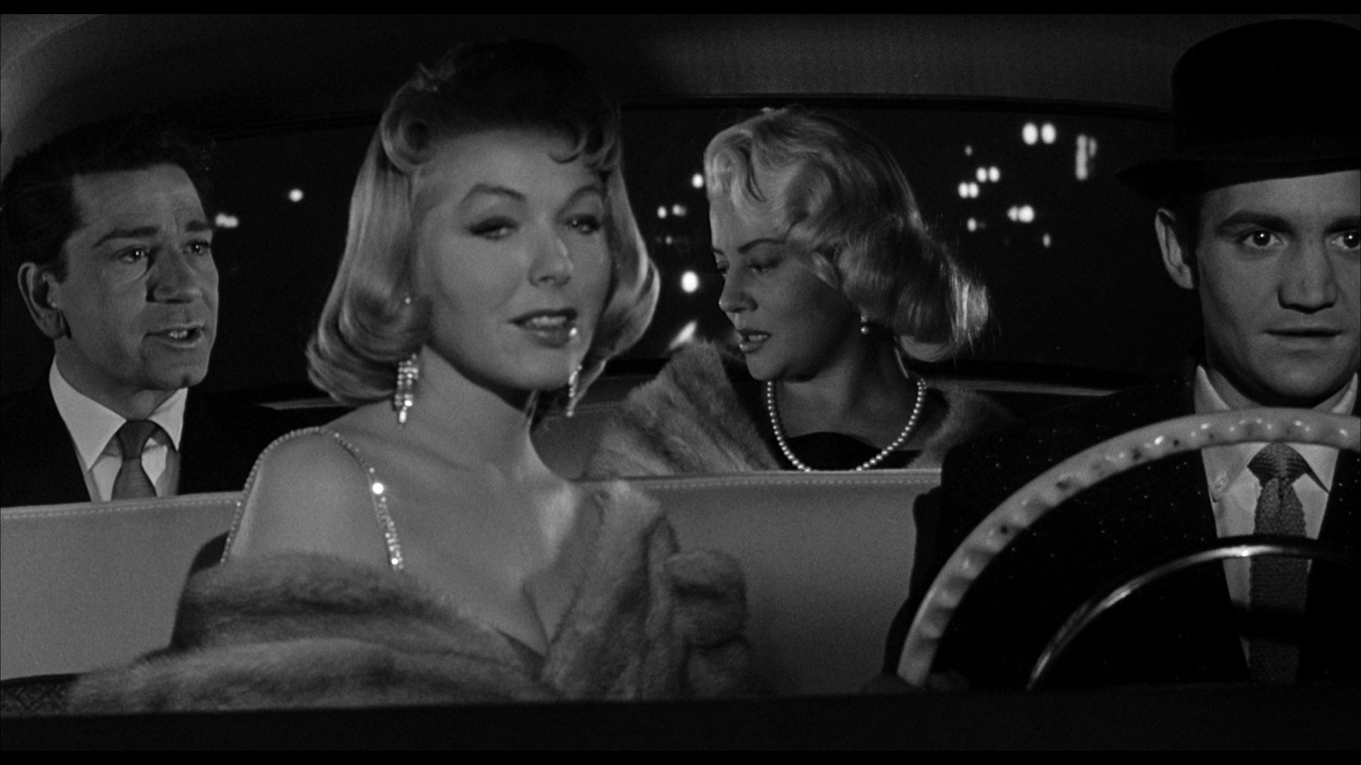 Richard Quine, hot off of the Mickey Rooney noir, Drive a Crooked Road. Kim Novak gets to strut her femme fatale stuff here as Lona, who ends up spending time with cop Paul Wheeler (MacMurray, back to noir after Double Indemnity) when her car stalls. As it turns out, Paul is shadowing her to get the goods on her ex-boyfriend, bank robber Harry Wheeler (Richards), including discovery of the location of the stolen look and identifying his partners. Paul and Lona soon fall for each other, or so it seems, which leads to the hatching of a plot to kill Harry and make off with the stolen cash. Meanwhile innocent nurse Ann (Convicted's Malone, still in her brunette phase) becomes ensnared in the plan while Paul's partner, Rick (Carey), also tries to figure out where the loot is. Getting an "introducing" credit in her first leading role, Novak is really the big attraction her in some fantastic Jean Louis outfits (one of which clearly anticipates Vertigo) and already showing the star power that would make her a Columbia fixture for the next decade (including 5 Against the House).