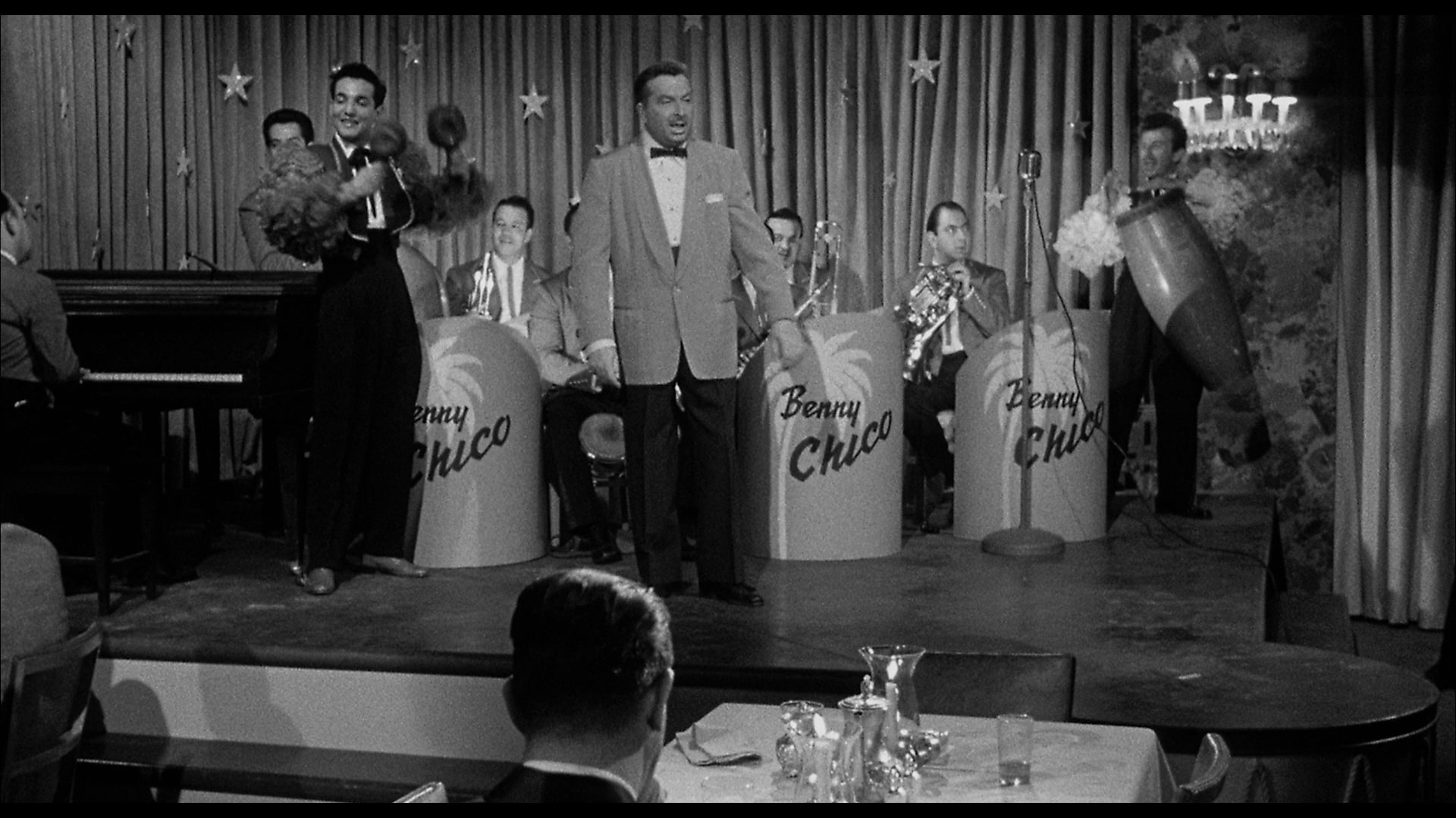better served here with a nicely appointed Blu-ray that replicates the original photography quite well. Take note that this is a very grainy film for the most part, so anyone averse to the swarming mosquito effect should be aware going in that this is how it's supposed to look. Film historians Alexandra Heller-Nicholas and Josh Nelson provide a new academic audio commentary noting the film's ties to other noirs, the themes of gender relations and spectatorship woven into the story, the use of framing to create a feeling of confinement, and the ambivalence about some of the major characters (especially Rick). In "Partners in Crime and Comedy" (18m19s), critic Glenn Kenny covers the lives and careers of the star and director which including four films together (most famously 1958's Bell Book and Candle) and quite a few odd (and sometimes tragic) developments outside of the studio. Also included are a 30-image gallery, the theatrical trailer (in SD), and the 1955 Three Stooges short Blunder Boys (15m58s), appropriately centered around a bank robbery with the trio as war vets who end up becoming policemen with very iffy professional results.