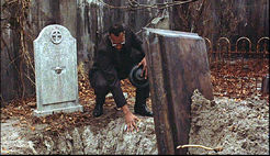 Director Alex Proyas, who followed this up with the equally flashy but far less satisfying Dark City, does a magnificent job of transferring James O'Barr's series of graphic stories to cinematic life. For once the grungy cinematography, music video editing, and hyperkinetic violence which have been beaten to death in countless neo noir films clicks perfectly here, most likely due to the dovetailing subject matter involving death, loss, and emotional disconnection. While Lee isn't exactly called upon to do any tremendous acting, he's a gripping presence in the film and maintains a sense of purpose and emotional anguish during his action sequences. The musical combination of goth rock and Graeme Revell's dense, haunting score is also a textbook example of how to make a Top 40 friendly soundtrack without tearing up the fabric of the film.