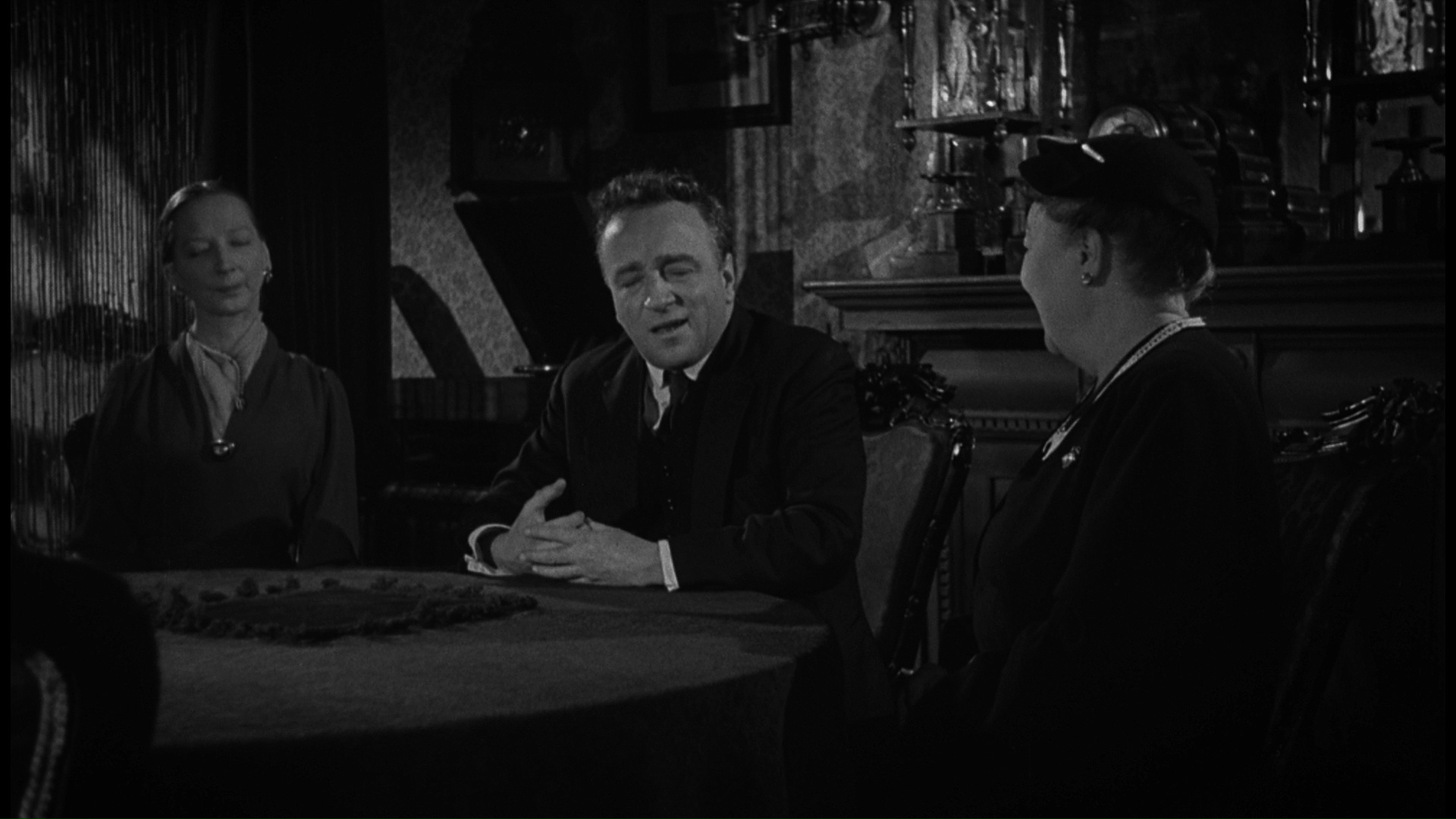 The first DVD of this film arrived in 2002 from Columbia (now owned by Sony) with both the extended British cut of the film (under its original title, Night of the Demon), which had circulated with the U.S. title sequence attached through the home video and repertory theater circuit for years, along with the long unseen shorter U.S. cut which truncates much of Karswell's character development (and his mother's as well) along with the entire, very creepy farm visit sequence. The film's moderate 1.66:1 framing has usually fared well on video anyway, but the more generous widescreen presentation here adds subtly to the little visual tricks Tourneur plays on his audience. (The film usually screens at 1.75:1 theatrically, at least with U.S. prints,