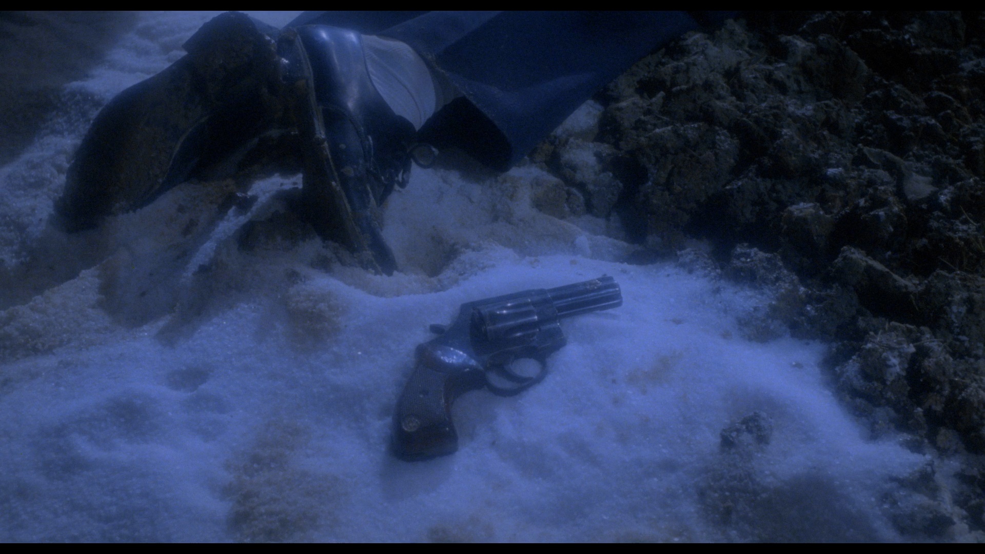 In 2020, Vinegar Syndrome brought the film to UHD and Blu-ray as a combo pack just in time for the holidays. The 4K-sourced transfer appears to be from the same scan, though on the Blu-ray it's been given a bit more color correction and has punchier, more vibrant reds and browns in particular. The UHD benefits significantly from the addition of HDR here and looks gorgeous in motion with a much wider spectrum of color on display that makes the heavy reliance on blue lighting from over half the film easier to appreciate; blacks are also deeper and richer throughout, and the white snow really pops whenever it flurries across the screen. The DTS-HD MA French 2.0 track sounds excellent and decodes beautifully to surround with lots of multi-channel activity throughout. The specs list "newly translated English SDH subtitles," though thankfully that's not correct as these are standard English subs without SDH designations (light yellow on the Blu-ray, white on the UHD). The UHD is bare bones and devotes all of its space to the film itself, a wise choice given how much breathing room it gets; the Blu-ray features a slate of extras essentially mirroring what's on the Camera Obscura release, albeit running at proper speed now so the running times vary a bit. (For example, "Jouets Interdits," or "Forbidden Games" as it's translated here, now runs 88m46s.) The production featurette is now called "Simon Says Roll Sound," FYI, in case you're trying to compare.