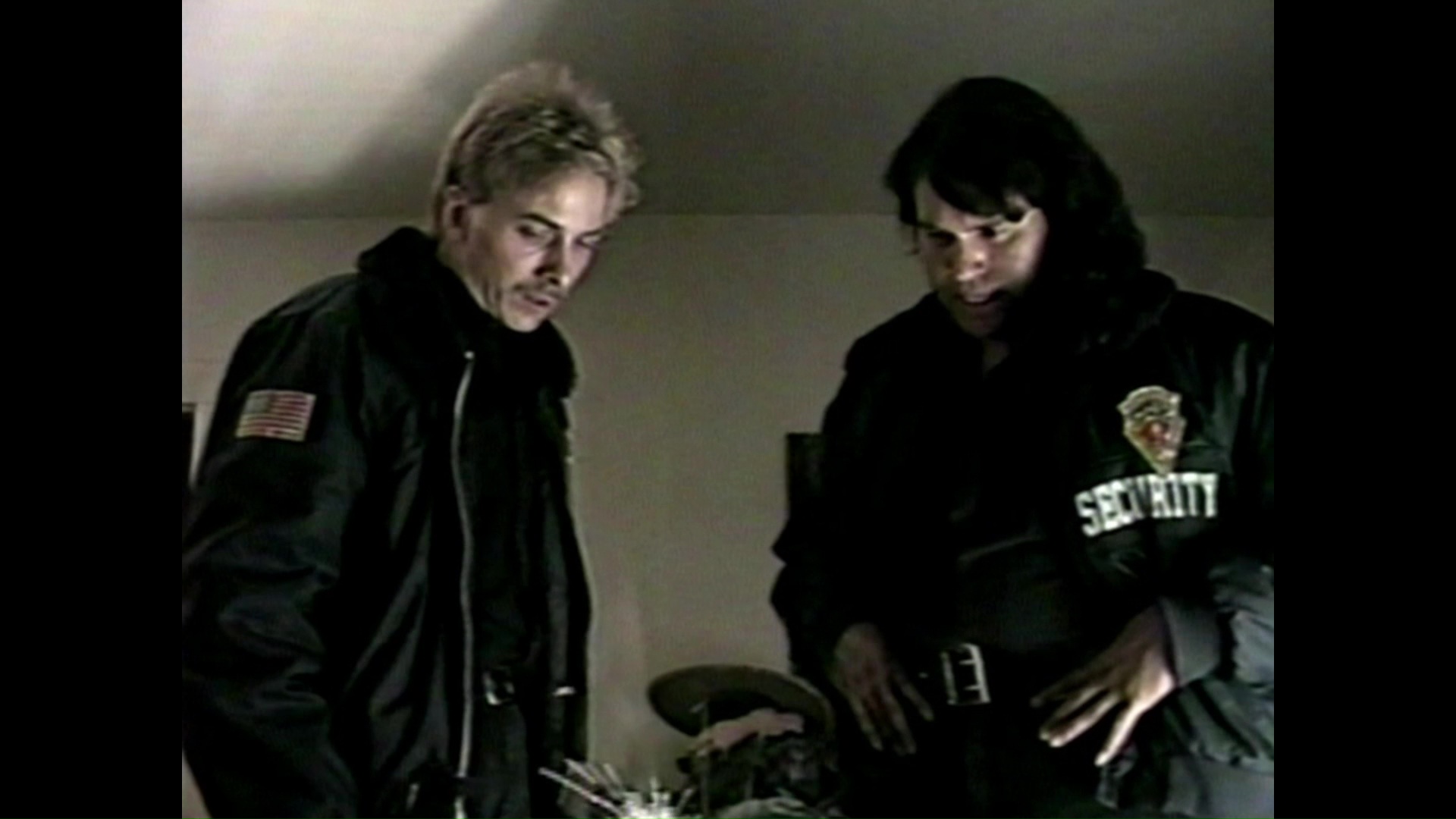 Obviously the 2026 Blu-ray edition marks the commercial debut of this series, which has a hazy, droning quality appropriate for both late night local TV and the current love of DIY video projects from bygone eras. Image quality is dependent on the source, of varying degrees of the capabilities of SD video shooting over the latter half of the '90s with production quality inching up as you go along. The DTS-HD MA English 2.0 audio sounds fine given the limitations and again gets much more coherent and slick after the first couple of tales. The two commentaries mentioned above are fine but very casual and loose; you'll be better off starting with the two biggest video extras starting with a lengthy interview with Spitzer and Kumpon (46m) about the show's origins, the intentions to appeal with the right mood for a late-night audience, the tactics they used to avoid getting cut into by informercials, and local resistance they faced despite plentiful positive local press coverage. Then you get an episode-by-episode Dead of Nighthistory of the show with Spitzer Dead of Nightand Kumpon (34m52s) chatting about the major lack of editing time early on, riffs they made on Star Trek and The Prisoner, the limitations they had to face, the creation of the various foes they faced, the bits they especially liked or thought didn't come off, and the creation of various "Halloween-style" lighting effects. An archival 8m26s behind-the-scenes featurette is basically a fun blooper reel, followed by a 5m15s reel of local TV coverage, a 10-image press gallery, a 16-page Black Vvideo Zine article, a 25m4s standalone interview with the duo about the final "Tool" episode and the inspiration of Trilogy of Terror, and a whopping 246m22s (yes, really) collection of raw footage from the shooting of that episode. On top of that you get six short films from the creators including 1983's silent Super 8 quickie The Salvage (2m50s), 1988's The Weird Zone (10m20s), 1997's Don't Look Up? (23m30s), 2001's Last Stop Station (19m39s) featuring a Spitzer and Kumpon commentary plus a 5m58s Kumpon interview about his filmmaking beginnings, the influence of John Carpenter, and the three-year production process, 2002's Shadows in the Garden (20m31s) with a duo commentary and a 12m36s Spitzer interview, and 2008's Zombie Red (10m47s).