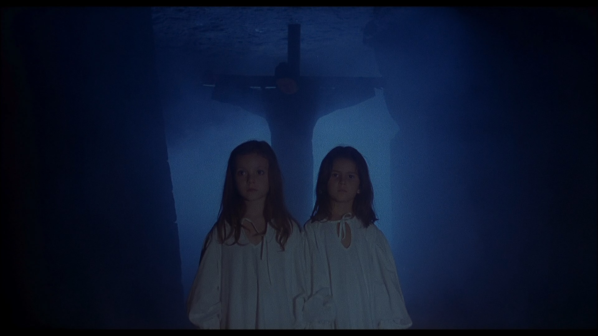 In the puzzling prologue, an isolated religious establishment on a stormy island is beset by problems originating from a stone medallion. Nuns trudge through the landscape carrying fiery crosses, a young girl is repeatedly stabbed until the water runs red with her blood, and a priest trapped in an underground flood meets the wrong end of a broken shaft of wood. Flash forward twenty years later, as young Elizabeth (Salter) arrives at the aforementioned island to discover why her father has been sending payments to the nuns ever since her mother's premature death. The Mother Superior (Kapnist) and her charges prove less than helpful, so Elizabeth takes to the library to find out the horrible secrets which have left her with nightmarish flashbacks involving a long lost sister. Meanwhile the occasional malicious nun tries to shove her out a window or stab her, leaving Elizabeth more determined than ever to uncover the diabolical secret which ties her to this wicked order.