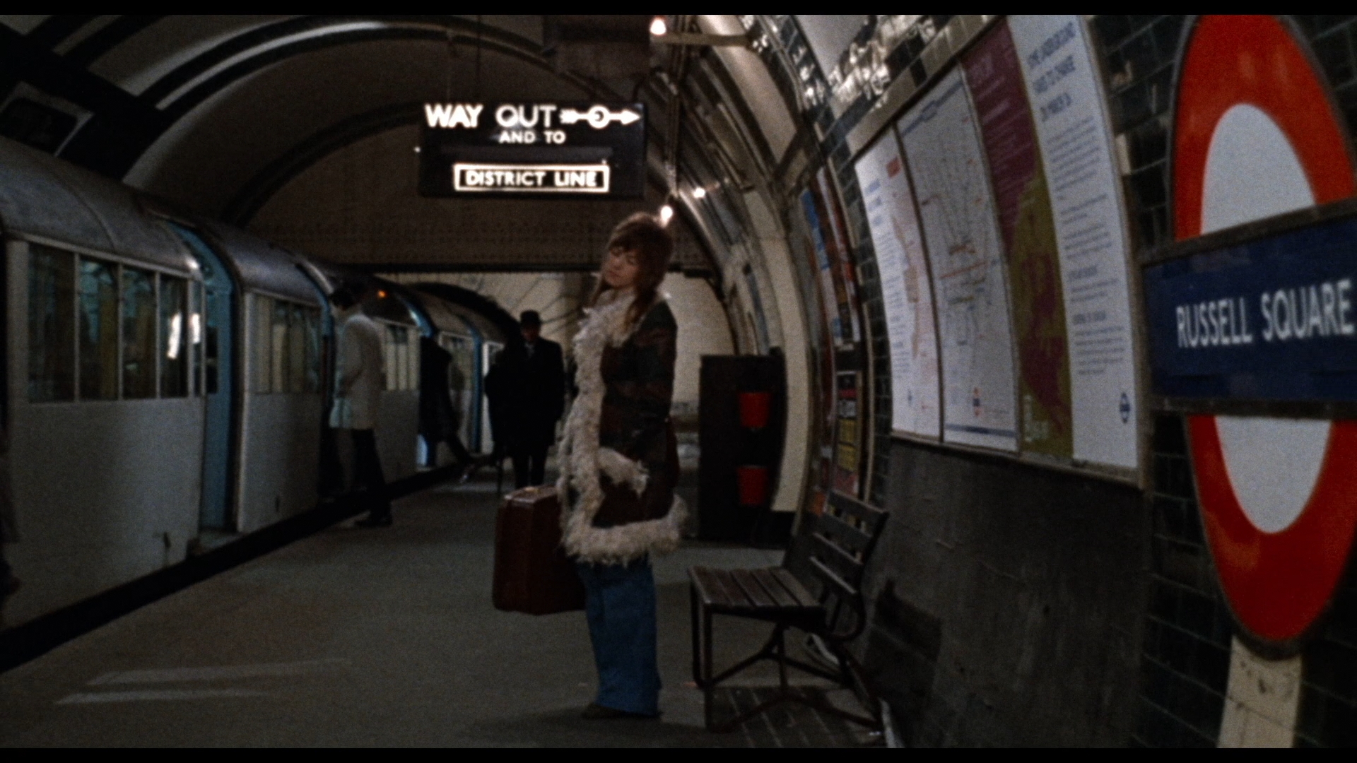In 2017, Blue Underground gave the film its Blu-ray debut as a dual-format release (including a DVD as a second disc) with a fresh 2K scan sporting the original Death Line title. Anyone familiar with this film knows how grainy and dark it can be, and thankfully that look has been maintained here with the original grain kept intact and not smudged away at all. Colors are extremely vivid at times (especially the opening credits with those multi-colored lights) and dull and brownish when required, while the darker scenes exhibit more detail than before without being overly brightened. The DTS-HD MA English mono audio sounds robust and can be played with optional English SDH, French, or Spanish subtitles. There's also an option to play the film with an audio commentary with Sherman, producer Paul Maslansky, and assistant director Lewis More O'Ferrall, moderated by David Gregory. It's a very candid and often funny track that starts off talking about their displeasure with the reedited ("butchered") AIP version sold out from under them, then covers how they managed to sneak around London city regulators by submitting a doctored spy script instead of this one to shoot in one key station, the joys of working with Pleasence, Armstrong's relentless commitment on set to staying in character, and the connections to everything from Monty Python to Frenzy.
