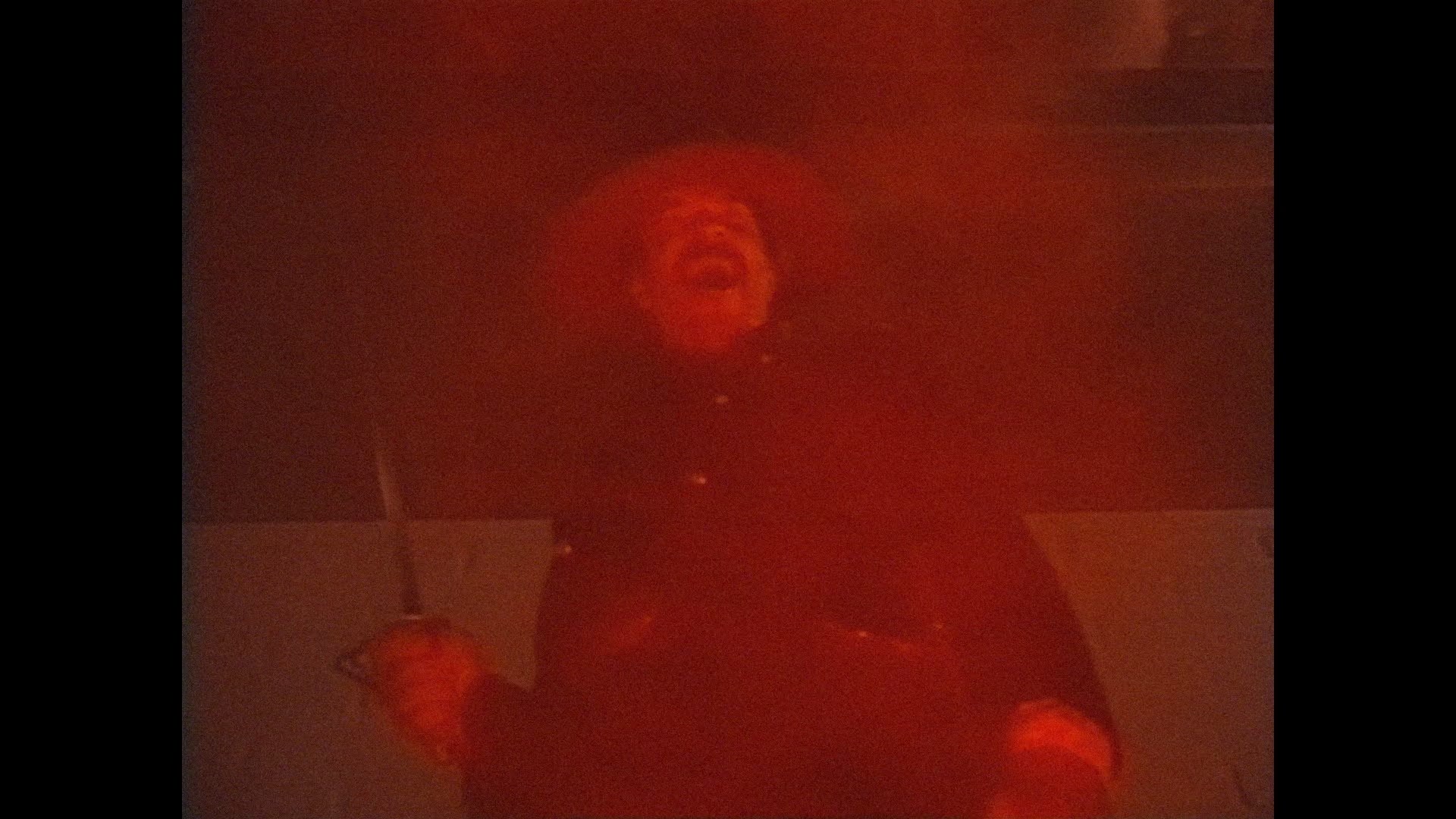 Endearingly committed to its vision, this film rides almost entirely on the fire and brimstone performance by Dunlap who gets to emote like crazy while brandishing his sword in the reddest light you've ever seen. Clinco is clearly tipping his hat to '80s horror throughout here, not just using The Fog as a template for its spectral avenger but also tossing in an outrageously graphic, protracted reenactment of the sex shish-kebab slaying from Friday the 13th Part 2 (or A Bay of Blood if you prefer). The film also doesn't follow the usual narrative path either, with its high
