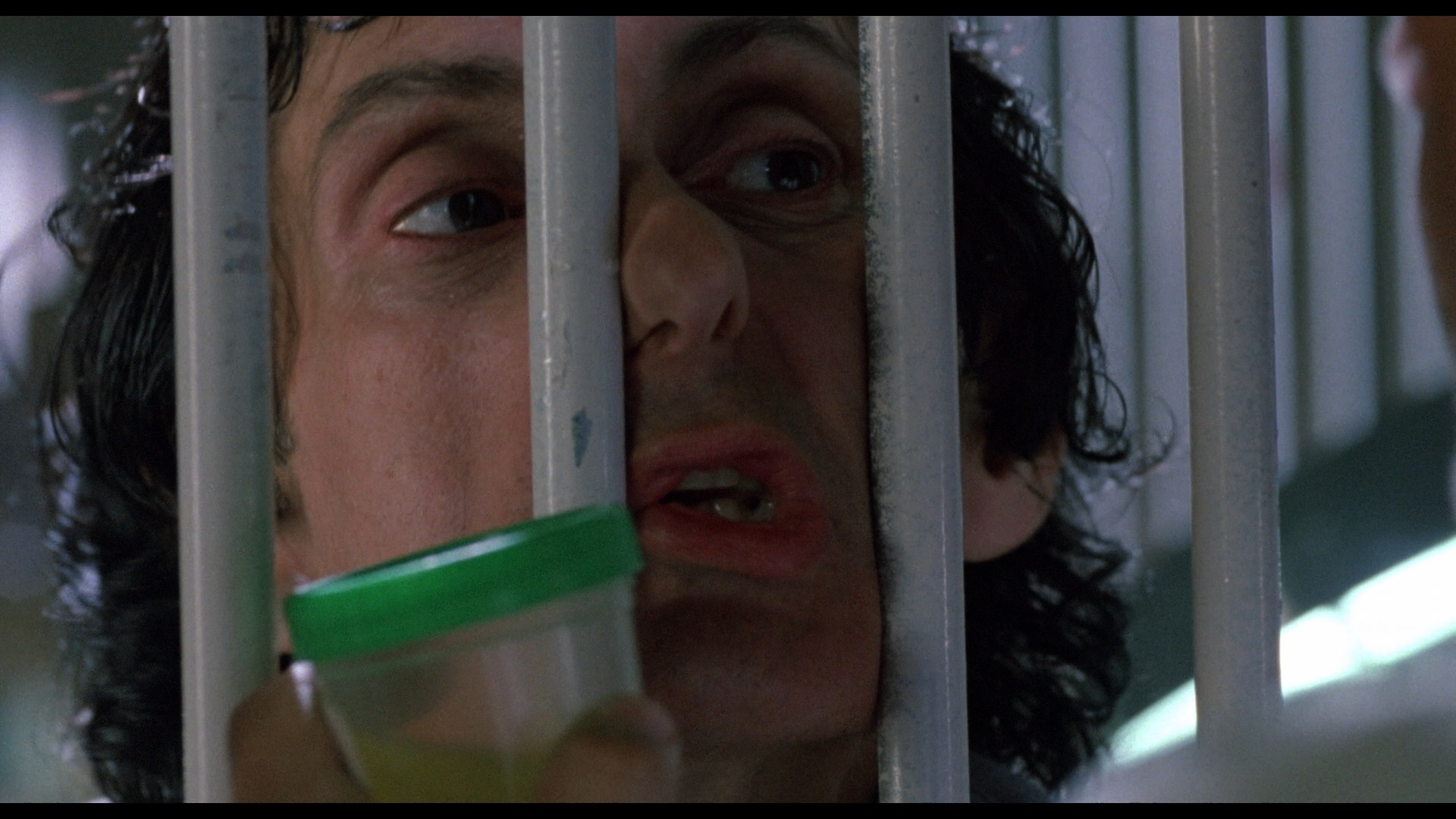 identical, the upgrade here is very obvious in the color timing with deeper blacks and a far more dynamic color palette that really comes into play during that last half hour with some eye-popping shades of orange and blue running riot all over the screen. The DTS-HD MA English 2.0 track nicely replicates the original Dolby Stereo mix, which decodes nicely to surround with solid support for regular Cannon composer Gary Chang's synth-heavy score. A new solo audio commentary with Sarafian is a great source of production info about the film and the source script, though it starts abruptly and has quite a few lengthy gaps of dead silence (which isn't surprising if you've heard any other MGM-connected tracks in the past couple of years). Also included are two new video interviews starting with Kilpatrick (9m59s), who talks about working on this film after trying out for the role of Hannibal Lecter/Lecktor in Manhunter and the decisions behind his wardrobe and head shaving appearance. Then actor Art LaFleur (7m20s) appears to chat about his role as the corrupt prison sergeant and making this film after The Blob, as well as his memories of Sarafian and the rest of the crew. The outstanding theatrical trailer is also included in glorious HD along with bonus ones for The Delta Force, P.O.W.: The Escape, Death Wish 3, The Dogs of War, Lone Wolf McQuade, Rollerball, and Body and Soul.