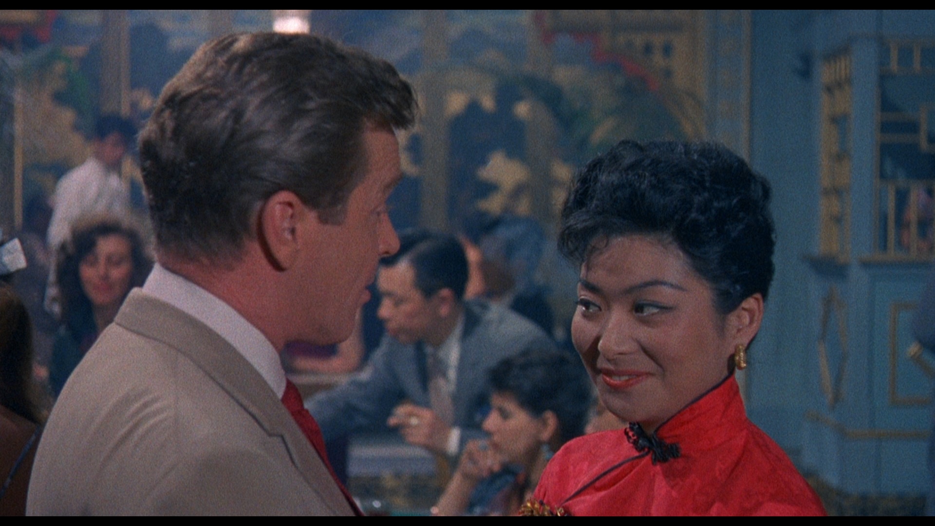 Before the Gilling cycle we have the first disc in the four Blu-ray set and easily the most obscure of the quartet, Visa to Canton. Also released in the U.S. as Passport to China, it's one of the earliest of the (very) cheap but colorful spy films that populated worldwide cinemas throughout the '60s in the wake of the James Bond craze (which this one slightly preceded, at least cinematically). Shot back to back with The Terror of the Tongs on the same sets and floated as a potential TV pilot, it's the story of American former combat pilot Don Benton (Basehart) whose tranquil existence booking travel in Hong Kong is upended when he's recruited to find the missing son of his local mother Visa to Cantonfigure (Seyler). The mission turns out to be very complex indeed since the young man was flying over China at the time, and his fate is entangled with an espionage plot involving a Visa to Cantonvaluable scientific formula held by a beautiful agent, Lola (Gastoni).