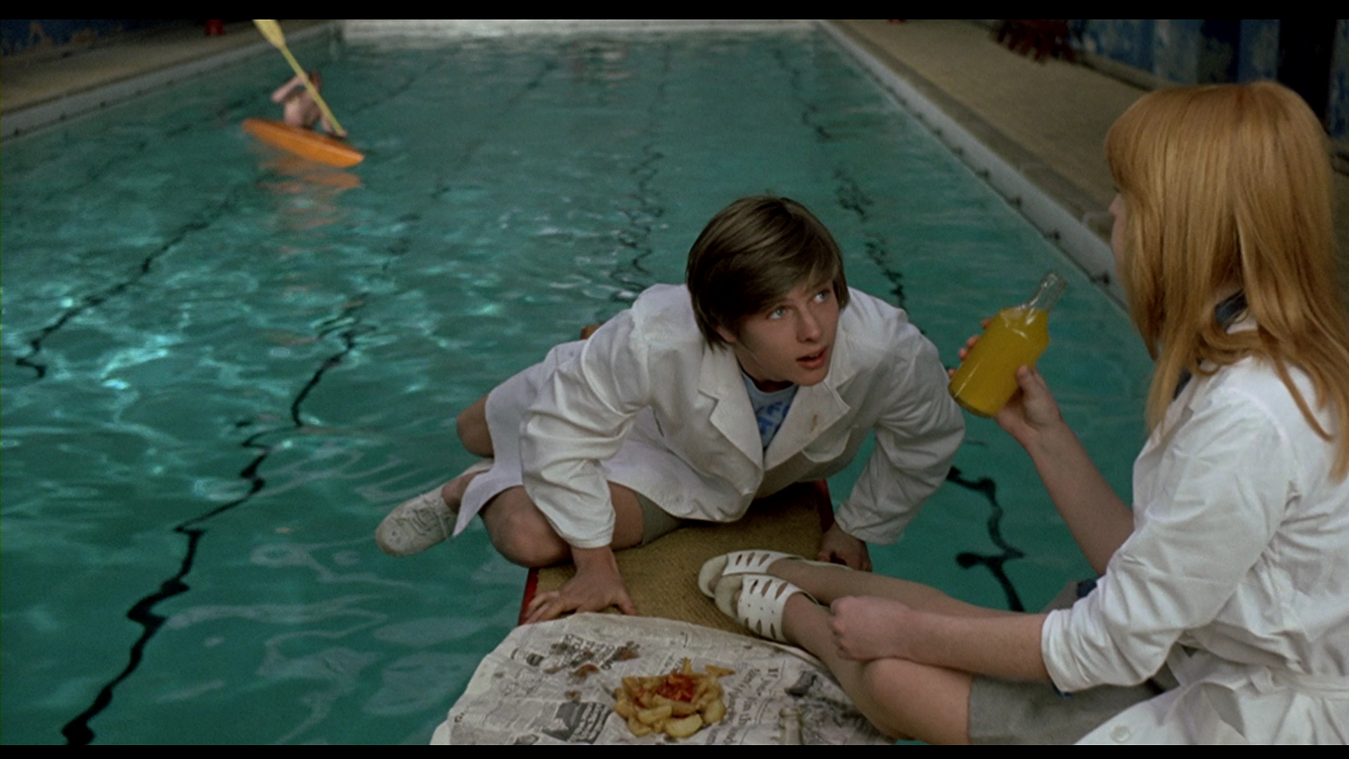 that would be far better known if its studio had bothered to ever release it on home video, Deep End has always stirred up excitement whenever it's popped up on late night TV screenings (including a pair of airings on Turner Classic Movies). Unfortunately it's always been presented in horrendous quality from a very dated old tape master with plentiful damage and very soft detail, and most people who couldn't catch a TV airing had to suffer with even worse bootleg copies. The BFI's announcement of a restoration for the film came as a pleasant surprise, and it even got some theatrical play in the UK with Moulder-Brown and Asher reuniting for the first time since the production for a screening Q&A. The restoration obviously doesn't have much competition from any past versions, but it is indeed quite a stunner. The film is released from the BFI as a dual-format edition containing a Blu-Ray and a DVD, but the former is definitely the way to go if you have the capability. Colorful, detailed, and very filmic, it's only limited at times by the film stock that tends to go a bit grimy and nasty during some of the night scenes like many of its early '70s ilk. It's really hard to imagine how this could possibly look any better, and for anyone pining for a good version of this film to be released someday, it easily exceeds expectations. The mono audio is also very sharp and much more intelligible than even the rough theatrical prints that survived over the years.