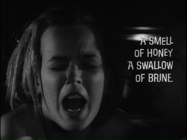 favorite among die-hard Something Weird fans ever since its VHS bow, A Smell of Honey, a Swallow of Brine, a vehicle for the absolutely astonishing Stacey Walker. Though her film career only lasted about a year (also including two nudie shorts and Friedman's The Notorious Daughter of Fanny Hill), her place in the exploitation hall of fame was cemented with her performance here as Sharon, a young woman who gets her kicks by playing mind games with her male and female partners ranging from verbal insults to last-minute false rape accusations. Her tactics land one poor guy in the slammer, which encourages her to use her office job as a secretary as her personal hunting ground -- as well as digging her claws into her lesbian roommate, Paula Carr), leading to the line "I may be a bitch, but I'll never be a butch," a staple of the SW promo reel. The actual roughie content here doesn't really kick in until the last 20 minutes courtesy of some stylized, time-filling fantasy sequences involving whipping and bondage, and the inevitable ironic ending where karma catches up with Sharon in a twist you'd never see on the big screen today.