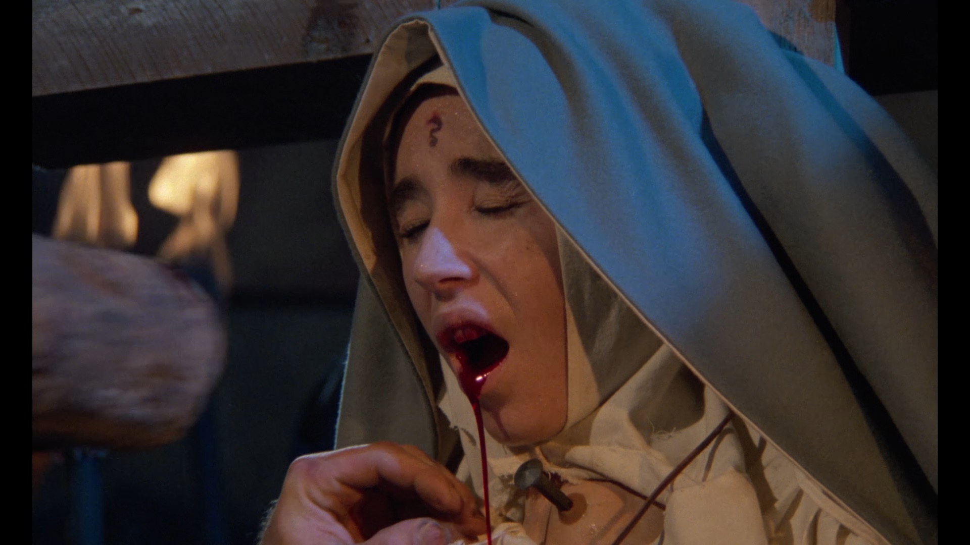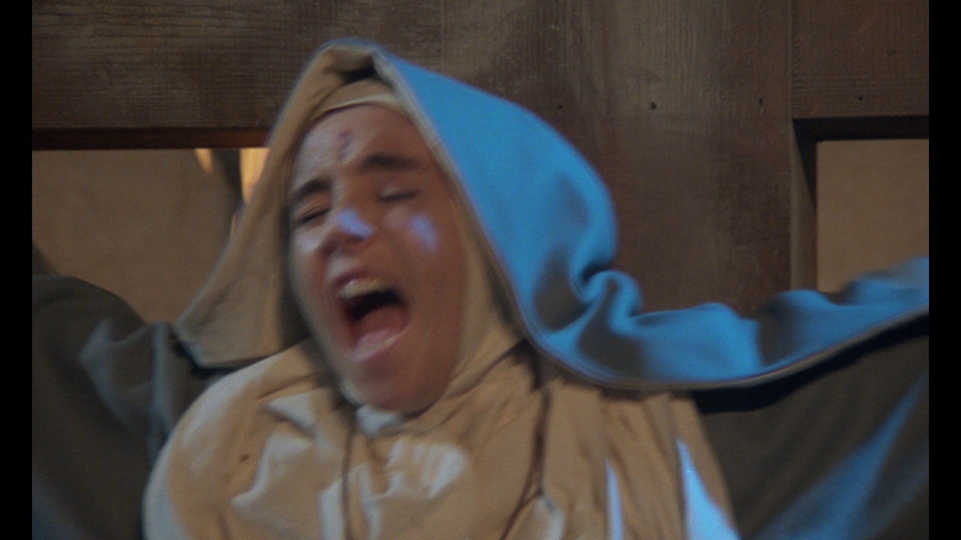 After a long hiatus, Fulci's film finally came back into circulation in 2020 from Severin Films as a Blu-ray edition including a limited slipcover. Needless to say, technological advances have Demoniaallowed this one to shine a lot more brightly here than before with the foggy scenes in particular looking a Demonialot more legible. The stronger color timing and far sharper detail make it more pleasurable to watch as well. Both the usual English track and the Italian version are included (with respective English SDH and English translated subtitles); both sound fine but the English track is by far the superior mix with a much more layered sound mix and heftier presence for the music. A new audio commentary by the always excellent Stephen Thrower, author of Beyond Terror: The Films of Lucio Fulci, offers a nice balance of production history and insight into related topics like Sicilian inquisition history, literary allusions in the script, the real deconsecrated church that wasn't exactly handled with TLC, the cameo by Fulci's own boat (the "Perversion") recognizable from Cat in the Brain, and aesthetic callbacks to previous Fulci films. In "Holy Demons" (33m17s), uncredited co-writer and assistant director Antonio Tentori chats over Skype about his first exposure to Fulci's cinema, his various gigs on his films, the state of the Italian film industry at the time, his gig as a film-crazy radio host, the sparse plot outline for this film, and the issues of shooting in Sicily including some hostility from the locals. Then "Of Skulls and Bones" (14m59s) features camera operator Sandro Grossi going into his work on Fulci's low budget TV films, the "rather odd" nature of this film, the various production issues with that church and its more grisly little secrets, Fulci's slovenly appearance and tough guy personality, and some odd thoughts on watching films in HD. The archival "Fulci Lives!!!" is ported over here from the DVD, and the English theatrical trailer is included in glorious HD.
