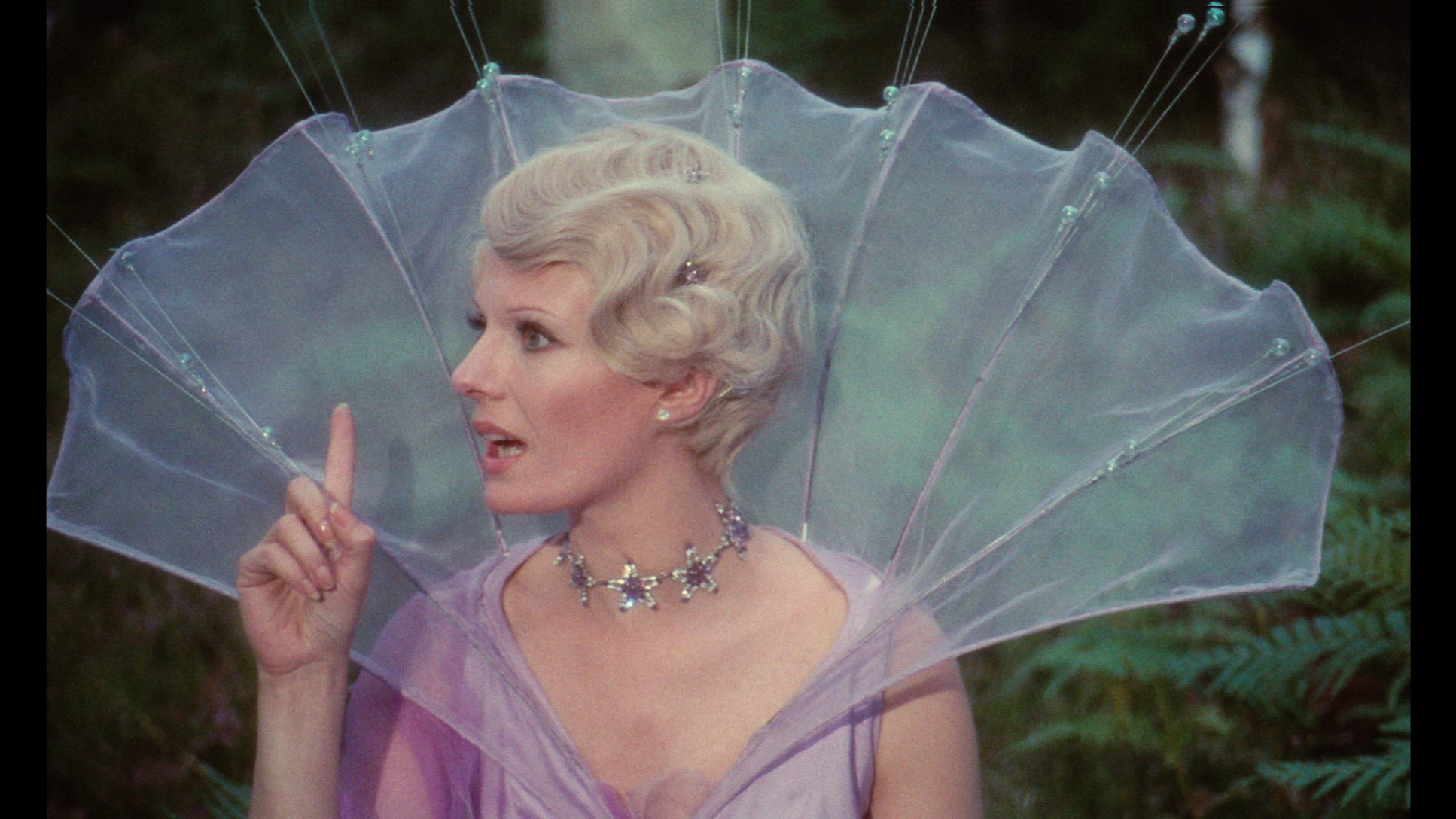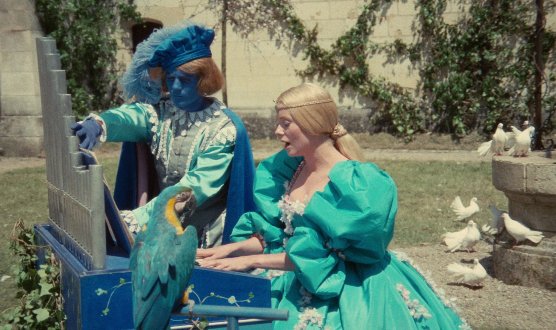 A delightfully odd and visually stunning experience, Peau d'âne features the same vivid Demy colors, costumes and Legrand musical numbers, but the sweeping camerawork has been replaced here with a more classical approach, framing almost everything in storybook-style medium shots. The sets are