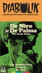 the counterculture split-screen filmed play, Dionysus in '69. All three of the early De Palma / De Niro ventures have been around on home video in separate editions of varying degrees of quality over the years, but they finally joined together in 2018 as a welcome boxed set from Arrow Video, De Niro & De Palma: The Early Films.