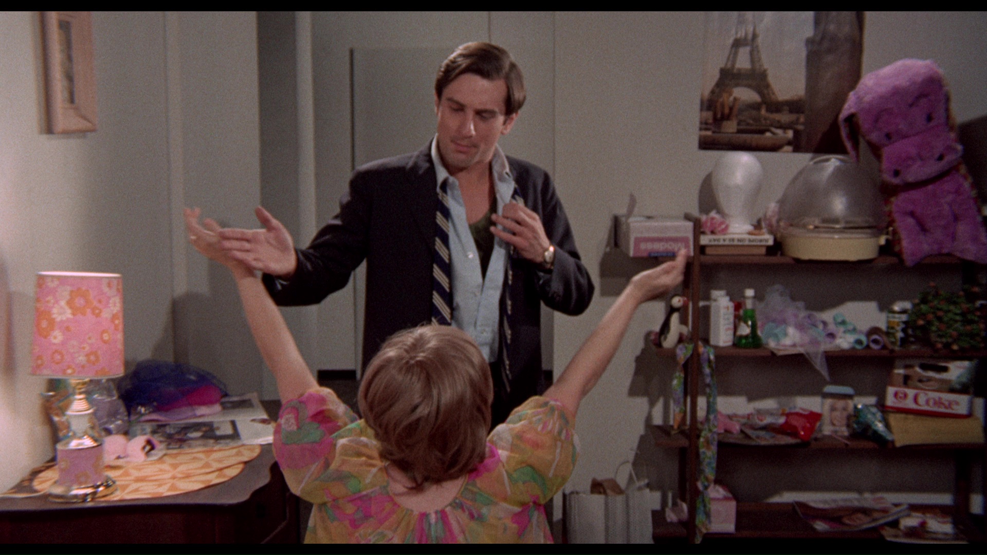 known today for his suspense and action films, Brian De Palma has always had a subversive, playful, and experimental streak running through his work dating all the way back to his early short films. His big breakthrough, the acclaimed chiller Sisters, is a great example of how he incorporated his puckish side into the demands of commercial filmmaking, and in fact that was his sixth traditional feature film. Before that he was known primarily for his freewheeling comedy Greetings, which earned its place in the history books as the first film given an X rating by the MPAA. (Bear in mind that's a 1968 X rating, a la Midnight Cowboy, so it's quite tame by today's standards.) De Palma's first feature to be filmed, The Wedding Party, was shot in 1963 and marked the first of his collaborations with Robert De NIro, a figurehead of sorts for his early comedies and later to return to play Al Capone in De Palma's The Untouchables. However, The Wedding Party didn't finish post-production until three years later and wouldn't get a release until 1969, hot on the heels of Greetings. Of course, the success of that latter film led to a direct sequel in 1970, Hi, Mom!, while the same four-year period also saw other De Palma projects including the borderline avant garde thriller Murder à la Mod (technically his first released feature and included as a bonus on Criterion's Blow Out), the very troubled studio project Get to Know Your Rabbit, and
