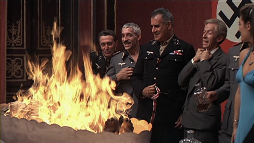 tastelessness: Nazisploitation. While Germany still forbade the iconography of its notorious, still-recent past at the time, Italy had no qualms about running wild with the combination of fascism and erotica established in films like The Night Porter and The Damned with