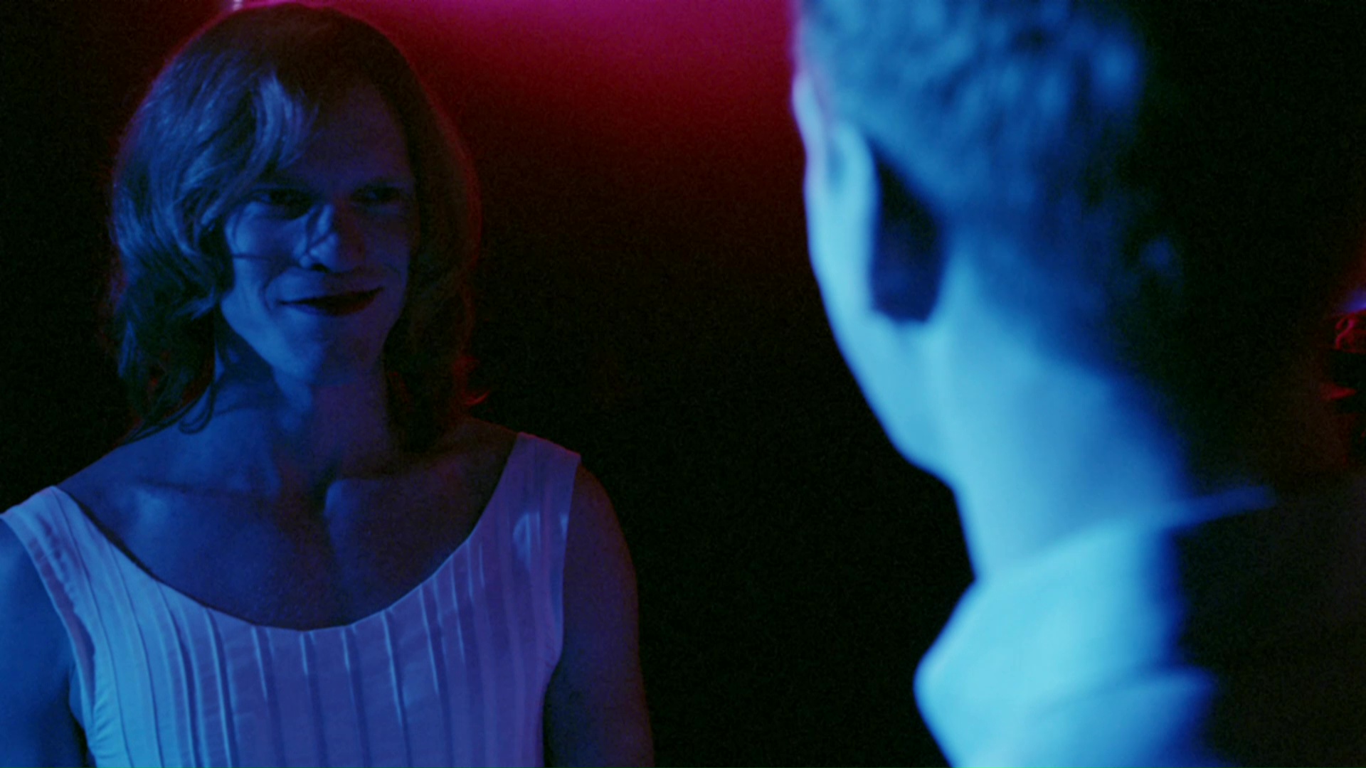 performance, not too far removed from what a young Klaus Kinski might have done with the role but going to some brave extremes even that famous madman might not have attempted. Structurally the film has a handful of echoes of The Hitcher (a film cited by the filmmakers as an inspiration), particularly in the final ten minutes, but it's a different beast entirely as it dives into more overt sado-erotic territory than the undercurrents of that '80s cult favorite. It's also beautifully shot, so much so that it's hard to believe this is director Till Kleinert's first feature; the use of color in particular is striking with the dark green of the town offset with vivid splashes of red