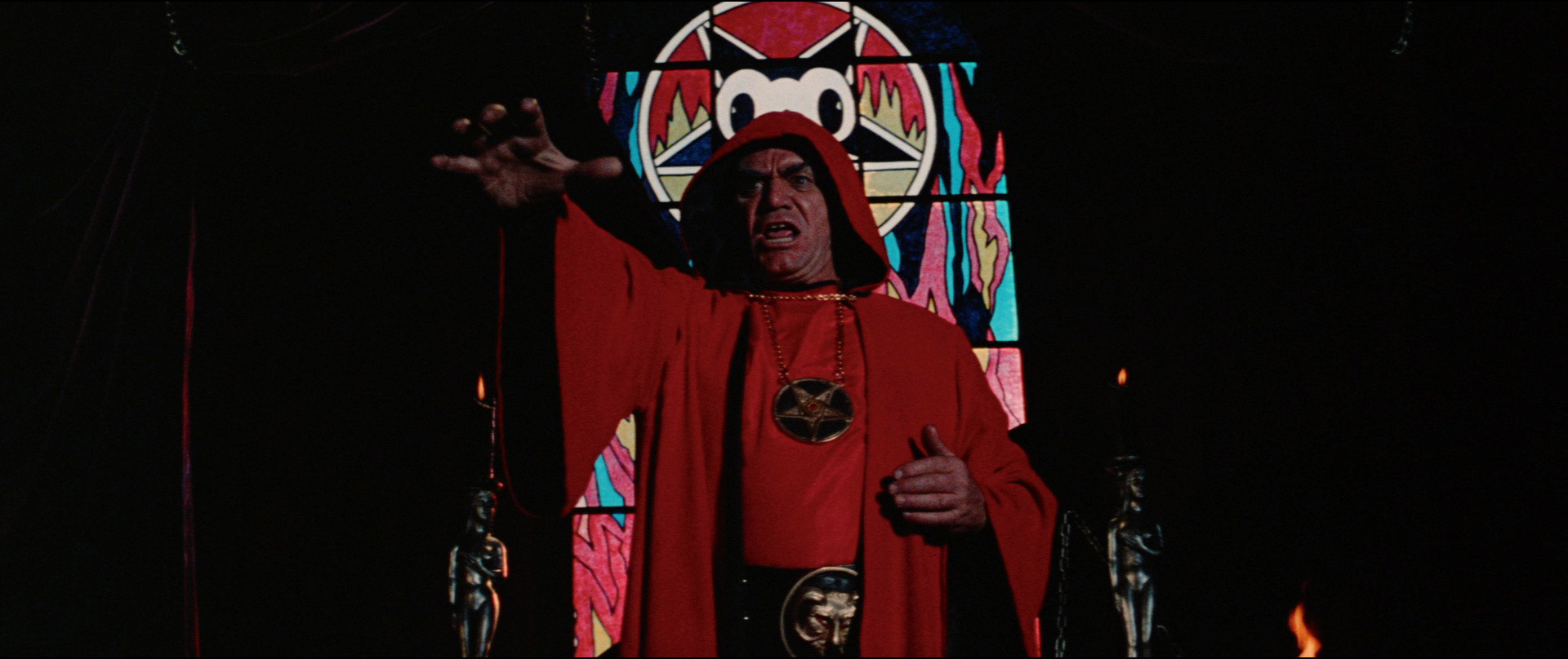 After suffering for years in horrendous pan-and-scan prints, The Devil's Rain first got the widescreen treatment courtesy of VCI in 2001 in a nice-looking but non-anamorphic DVD, cropped a bit in its framing to about 1.95:1. The evocative scope photography (in Todd-AO - how often do you see that on a horror movie?) makes excellent use of shadows and weird The Devil's Rainspatial compositions, though most general circulating prints were chopped off to 1.85:1. The VCI disc also includes a brief photo gallery and a tacky U.S. video trailer that spoils the entire story. The Devil's RainDark Sky's 2006 anamorphic upgrade restores the entire 2.35:1 framing and looks more vivid, thanks to being sourced from a more recent hi-def transfer. Color and detail level look improved throughout, though some of the artistic choices get pretty odd with more clarity; for example, Lupino's backseat car attack on Prather would have been quite frightening except that it takes place in broad daylight, where every flaw in her make-up stands out like a sore thumb. The extras are easily worth the spin as well, kicking off with Robert Fuest's lively commentary track. He discusses most of his career from his early production design days through his most famous titles, discussing the actors along the way and even debunking Cinefantastique's claim that he suffered a breakdown after shooting this film. Also included is the unforgettable theatrical trailer (much better than that VCI one) that includes some great '70s paintings, three radio spots, and a brief (34-second) B&W newsreel clip of LaVey in action.