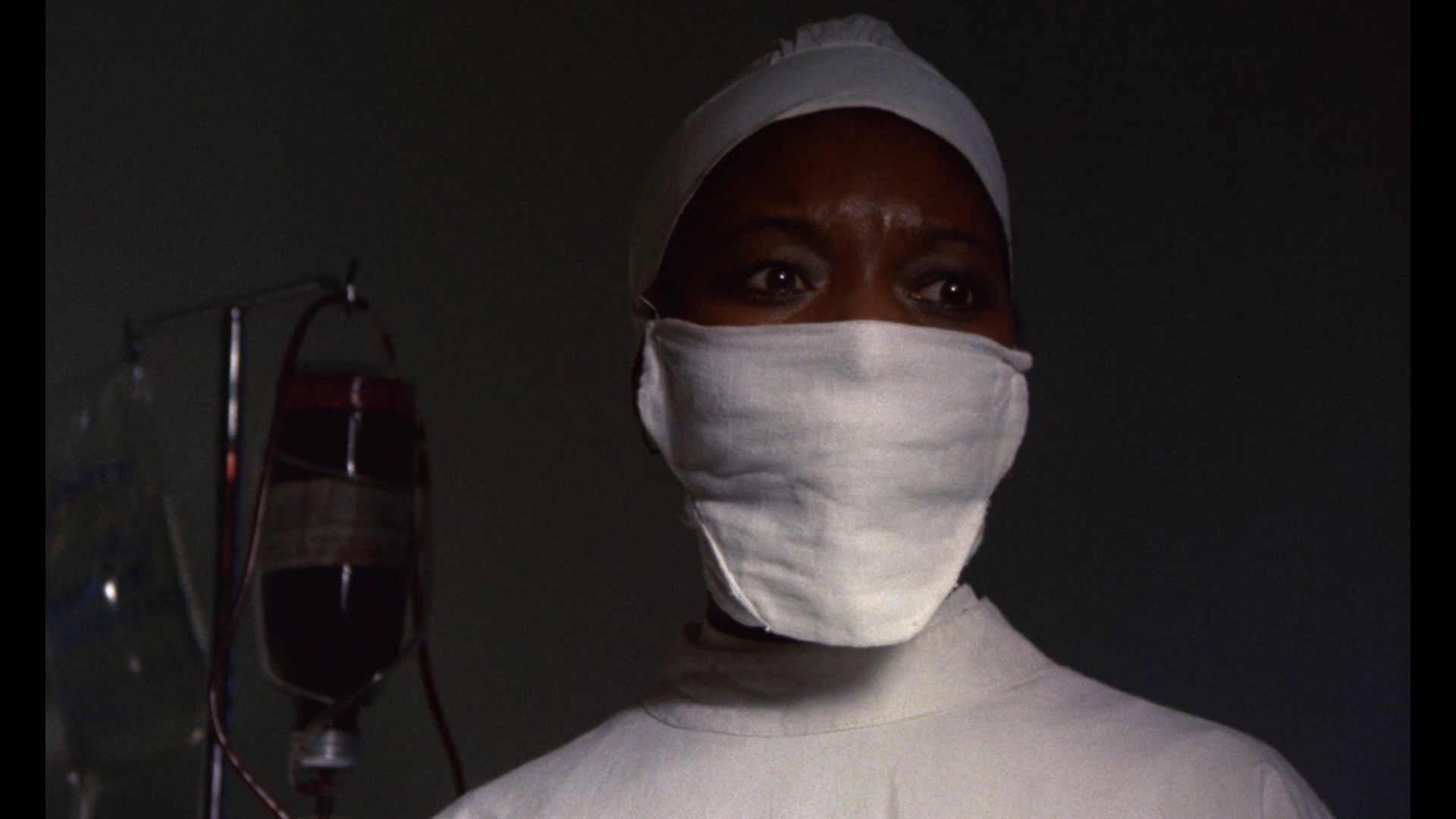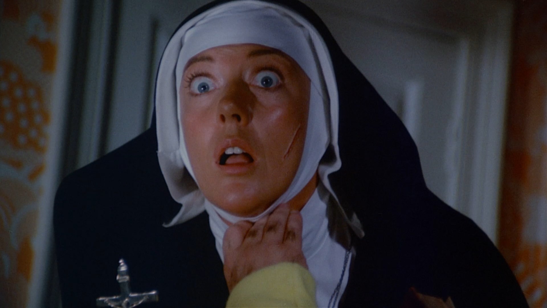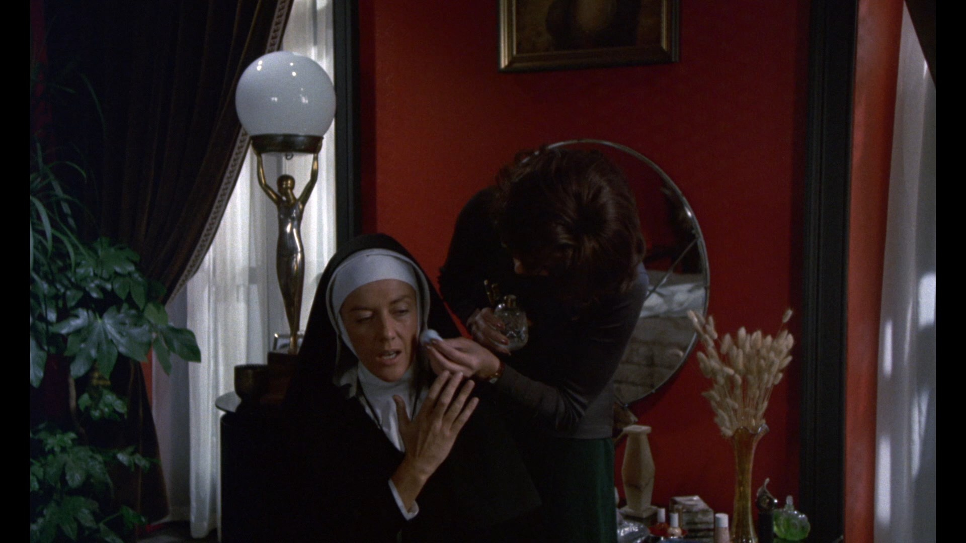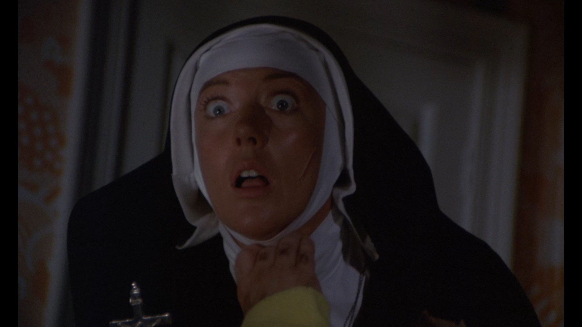 spookier look versus the sun-blasted appearnace on the American transfer. The English LPCM mono track sounds as good as always, now finally augmented with optional English SDH subtitles (particularly handy if you want to follow along and practice a dodgy Italian accent). A new commentary with Laura Mayne and Adrian Smith from the Second Features podcast is a loose and sometimes giddy accompaniment to the film as they provide background on the major players on screen, note the joys of the ultra-'70s production design, and tie it to other British genre films of the era. As they note up front it's a very podcast-style approach here that yields some surprising moments, especially a