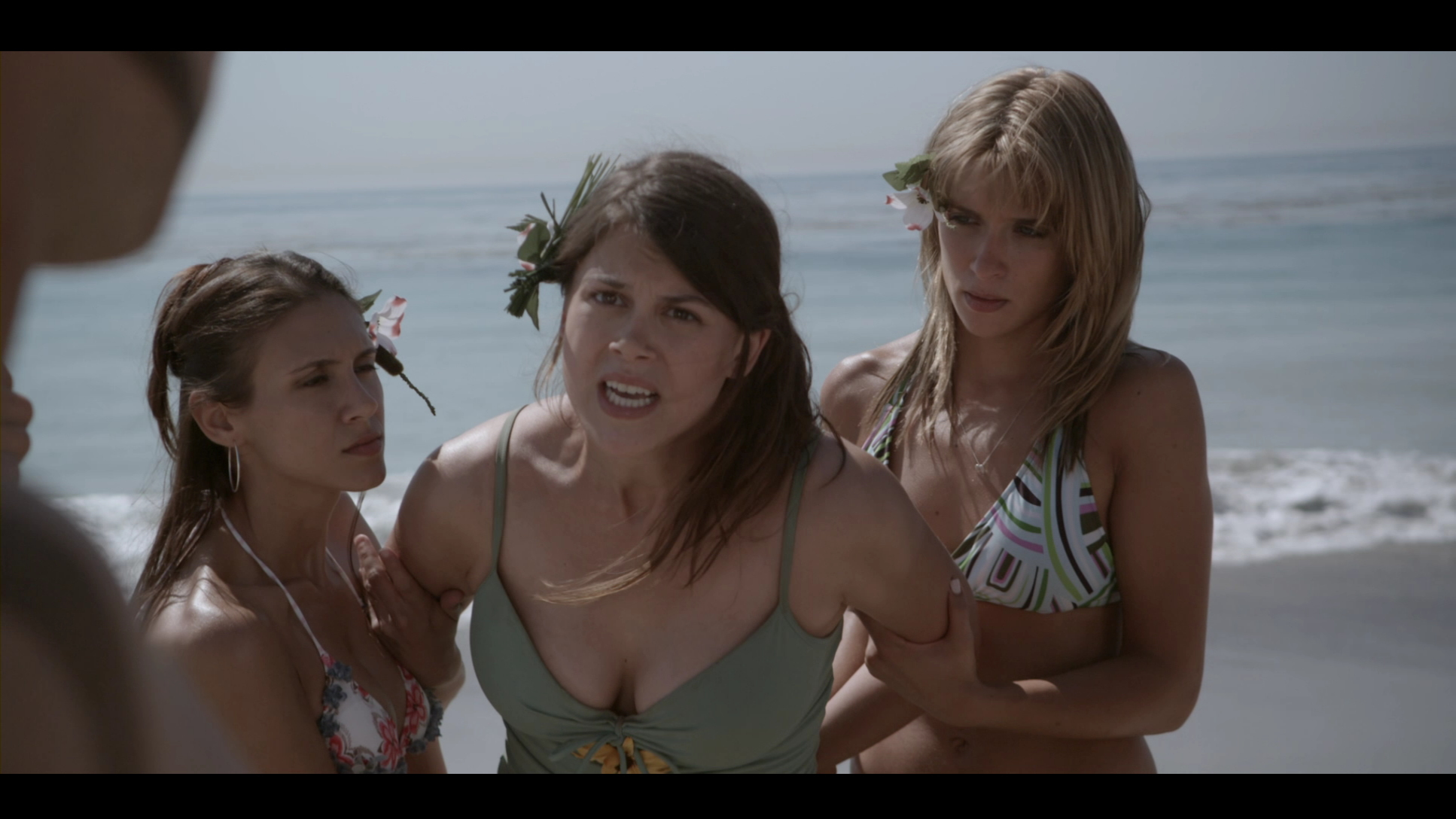 An opening newscast sets up the basic premise: a boatload of SoCal kids is missing out in the middle of nowhere, and quickly we see the surviving unpopular students forming together on the beach to figure out what happened. Unfortunately for them, the obnoxious cool kids also made it to shore and, under the command of their idiotic leader "the Rog" (Adamson, who easily walks off with the entire film), they quickly assert control. However, the Rog's girlfriend, Peggy (Pretty Little Liars' Shaw), is tired of putting up with the conformist high school scene and might be nursing some feelings for one of her unpopular admirers, Flynn (Rest Stop's Entin). Despite the fact that the Rog caused the explosive incident that sent their boat underwater, he maintains his hold as leader for a while... but while their only living adult chaperone, Coach Papillion (Kattan), spends most of the film making like Eric Stoltz in Anaconda, the two groups begin to switch allegiances back and forth until the island erupts into pandemonium.