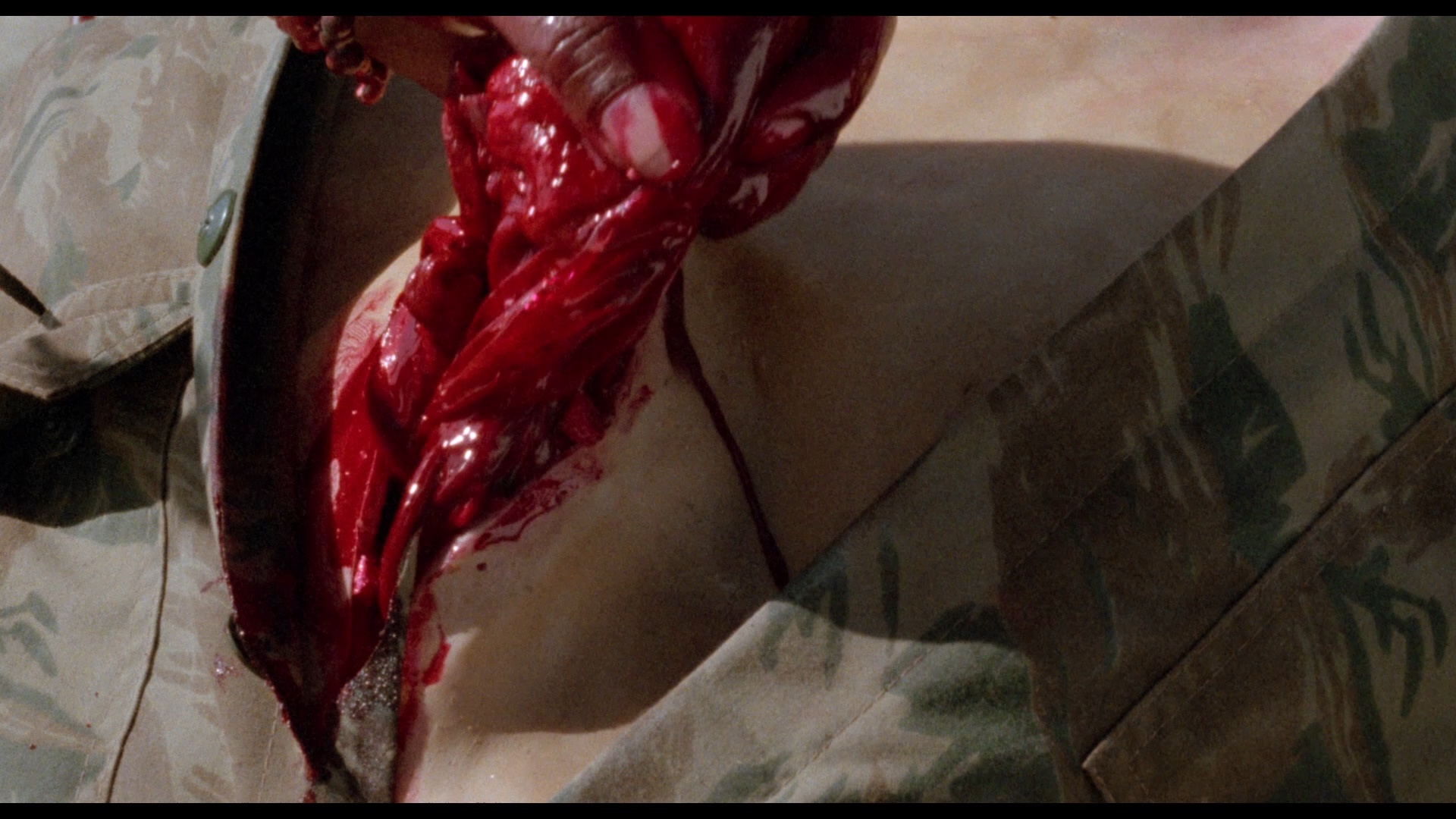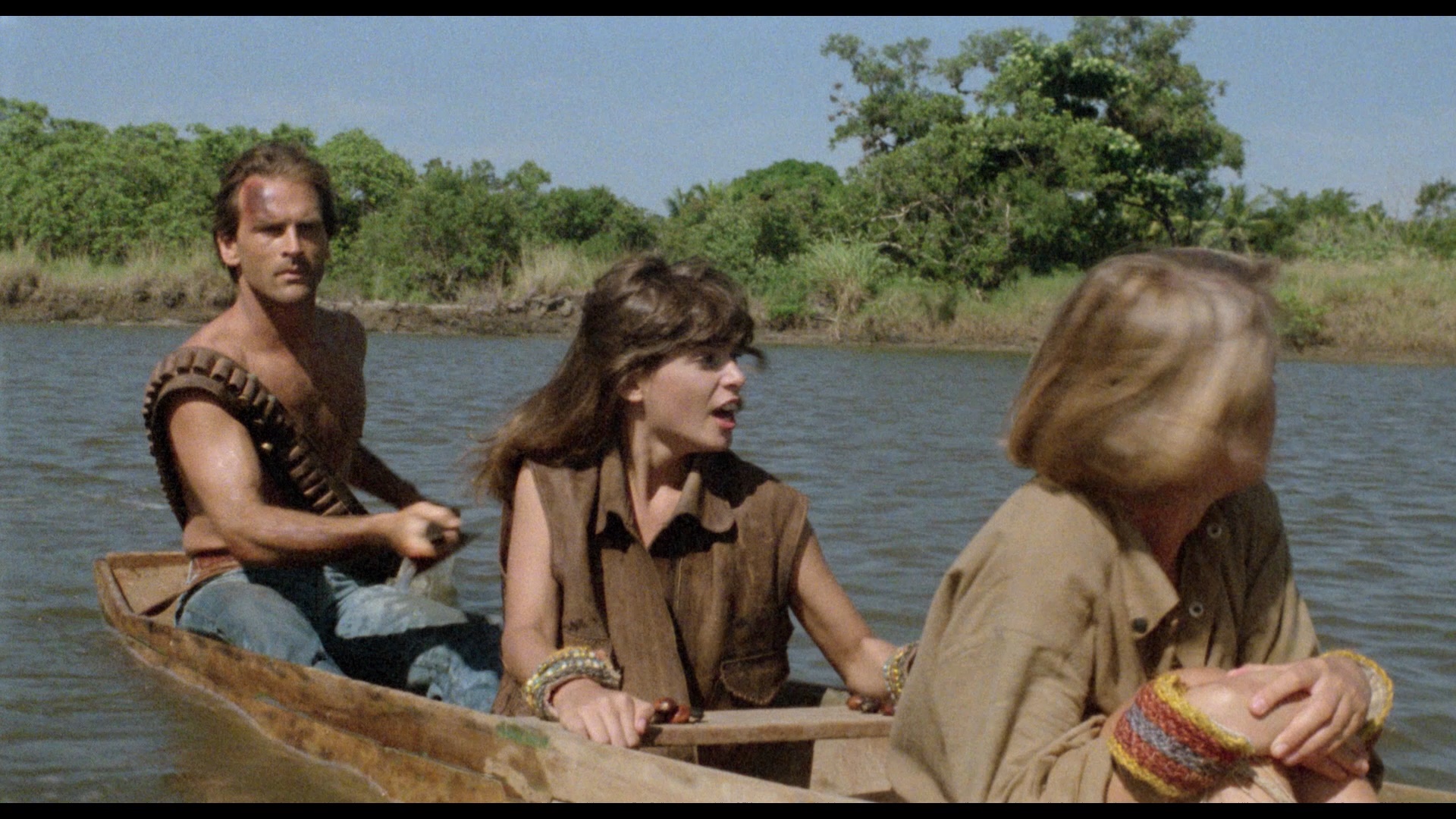 Those who missed out on Dinosaur Valley in its VHS stage probably first encountered it via the Media Blasters DVD in 2004 which featured a decent widescreen transfer, a Sopkiw commentary (recorded at the same time as his notorious retracted one for After the Fall of New York), and video interviews with both the star and director. Massacre in Dinosaur ValleyThis film has had a particularly rocky release history in the U.K. including a very heavily cut DVD release in 2002 as Cannibal Ferox 2 (with 1m54s shorn by the BBFC) and Massacre in Dinosaur Valleythen a Blu-ray under its original title from 88 Films (with a simultaneous DVD edition), losing 13s from a cockfighting scene but also absent some other footage presumably due to element damage. At least that disc features a reel of deleted scenes, Italian and English audio tracks with respective English subtitles, a trailer, and a "Location, Location, Cannibalisation" featurette (21m) by Calum Waddell. That release came before 88 Films' dedication to proper color timing, so it has that dull greenish tinge that plagued some of its other releases like Emanuelle and the Last Cannibals.