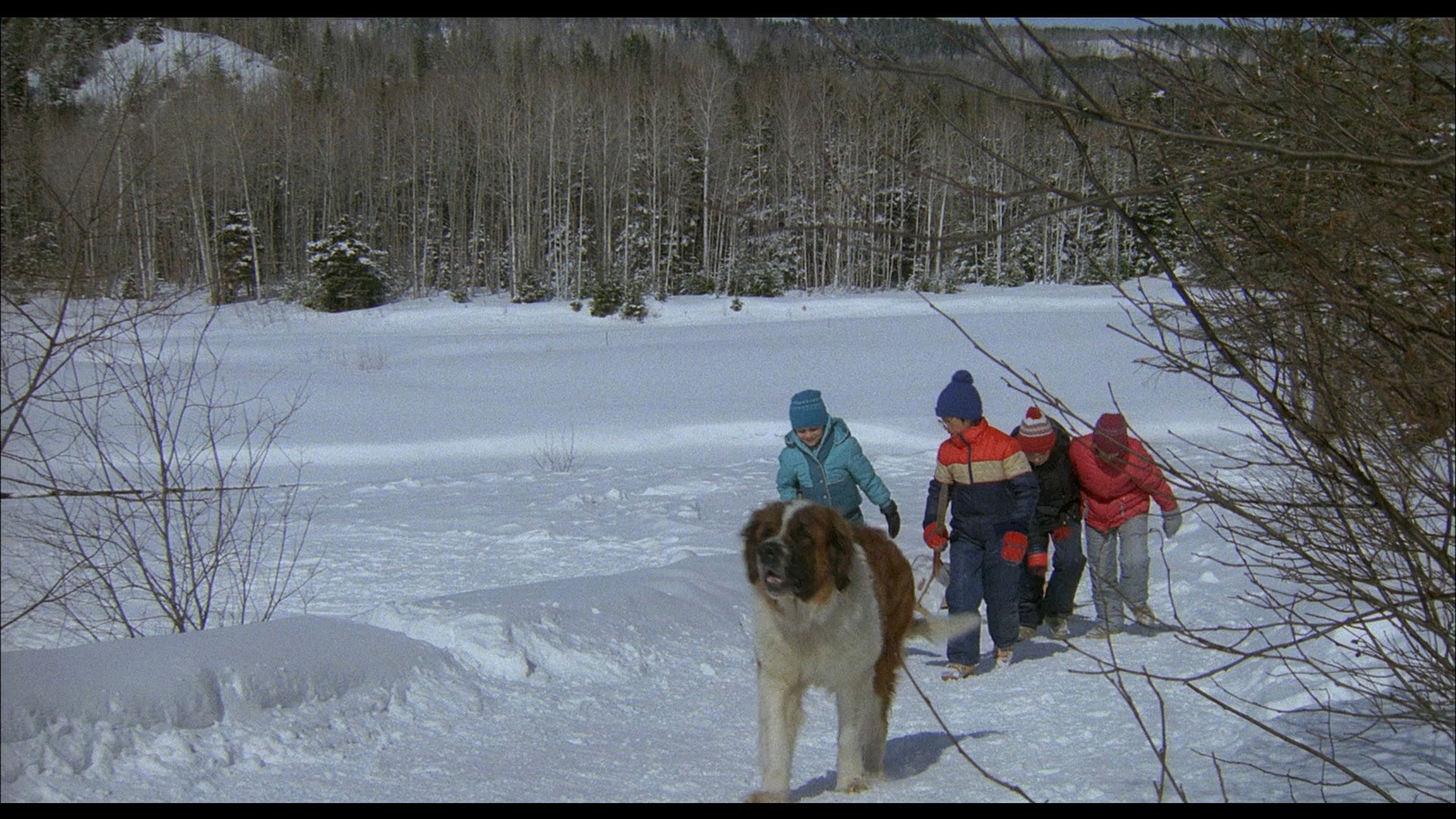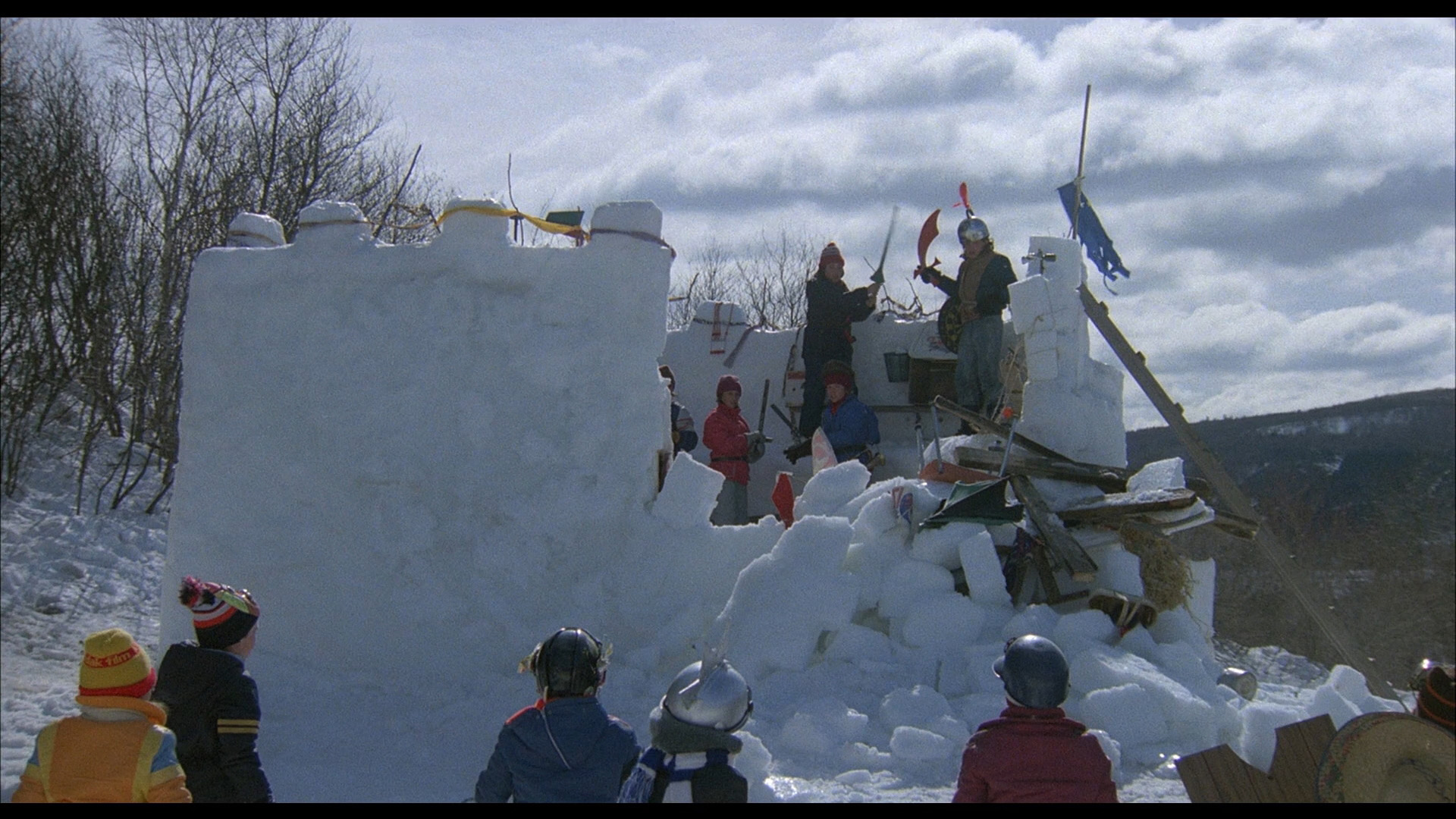 Making its Blu-ray debut in a lavish two-disc set is the bona fide inaugural Tales for All film, The Dog Who Stopped the War (La guerre des tuques), which remains one of the best-loved titles in the bunch and later spawned a TV sequel and animated 3-D remake. Kind of a less subversive take on the French classic Zéro de conduite (and maybe a little Lord of the Flies) with an anti-war message tucked into its hijinks, the story follows a group of Quebec schoolkids on winter vacation who instinctively engage in war games starting with a snowball fight. They end up splitting into two rival factions, one headed by Luc and the others by Marc whose loyal St. Bernard, Cleo, is essentially their mascot. Marc's pint-sized army constructs an elaborate snow fort that becomes the target of multiple attempted attacks, with various household supplies coming in handy for the escalating combat tactics. Of course, it's just a matter of time before these seemingly silly adventures get out of control.
