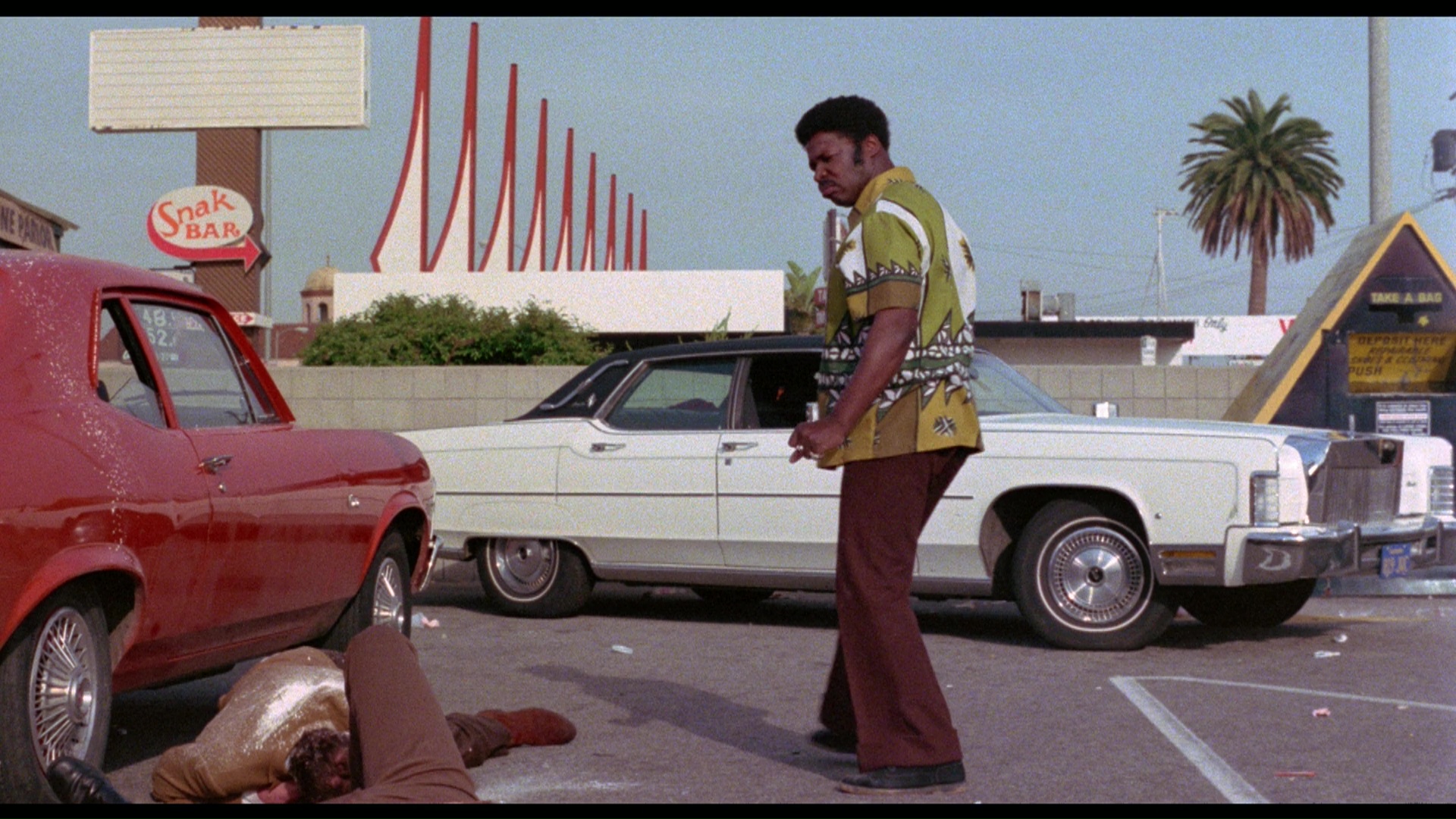 Blu-ray/DVD combo, which gives the film a much-needed HD overhaul that catapults beyond anything we've had before. Scanned in 2K from the original negative, it looks great with the correct theatrical framing giving it a more professional polish (as well as matting out all those "goofs" that drew unintentional laughter in past transfers). However, for the sake of completeness the open matte version is included from the same scan as well so you can still see that boom mic in all its glory. (Here's a sample shot.) A "historical commentary" is also provided by Moore's biographer, Mark Jason Murray, who talks quite a bit about his own history with Moore over the years up to his death and rattles off a dizzying array of facts about how the film evolved out of his stage act. The 24-minute "I, Dolemite" covers the genesis of Moore's career using excerpts from at least three interview sessions with the late legend, plus appearances by Murray, cinematographer Nicholas Von Sternberg, actor John Kerry, Lady Reed, and friend and co-star Jerry Jones, covering everything from Moore's early days in radio and music business through his disappointment with Martin's directing of this film, which Moore financed with all of his album profits, before it went on to become a major box office hit. A separate interview with Lady Reed shot on a camcorder is also included, running 23 minutes as she discusses her start working as a comedian with Moore, her comedy records (both her and Moore's adorn the background), and the success they found through grassroots marketing of their routines. A very brief (less than two minutes) location featurette compares their appearance in the film to their current state in Los Angeles, and the theatrical trailers for this film (one of the greatest ever created) and The Human Tornado are also included. An astonishing start to Vinegar Syndrome's revival of Moore's '70s work, this should leave you clamoring for the next three films as fast as possible.