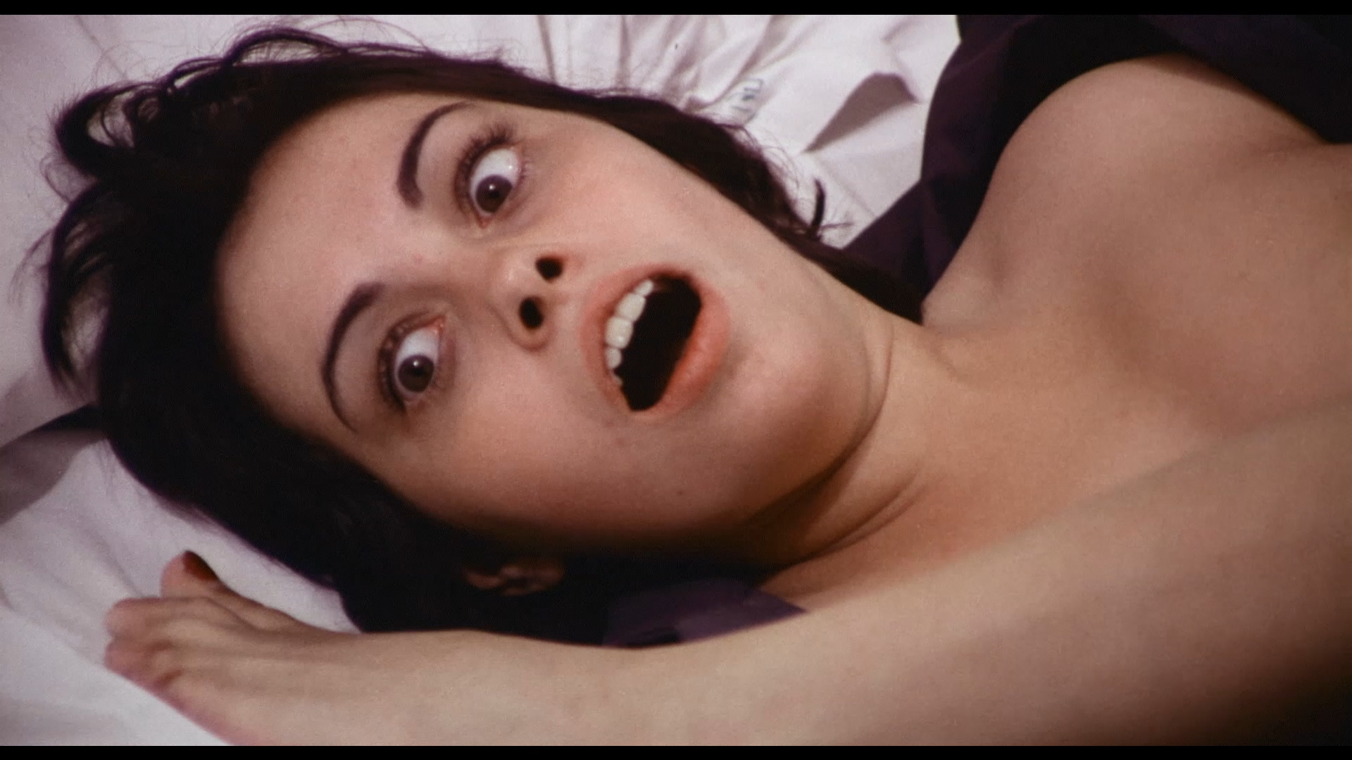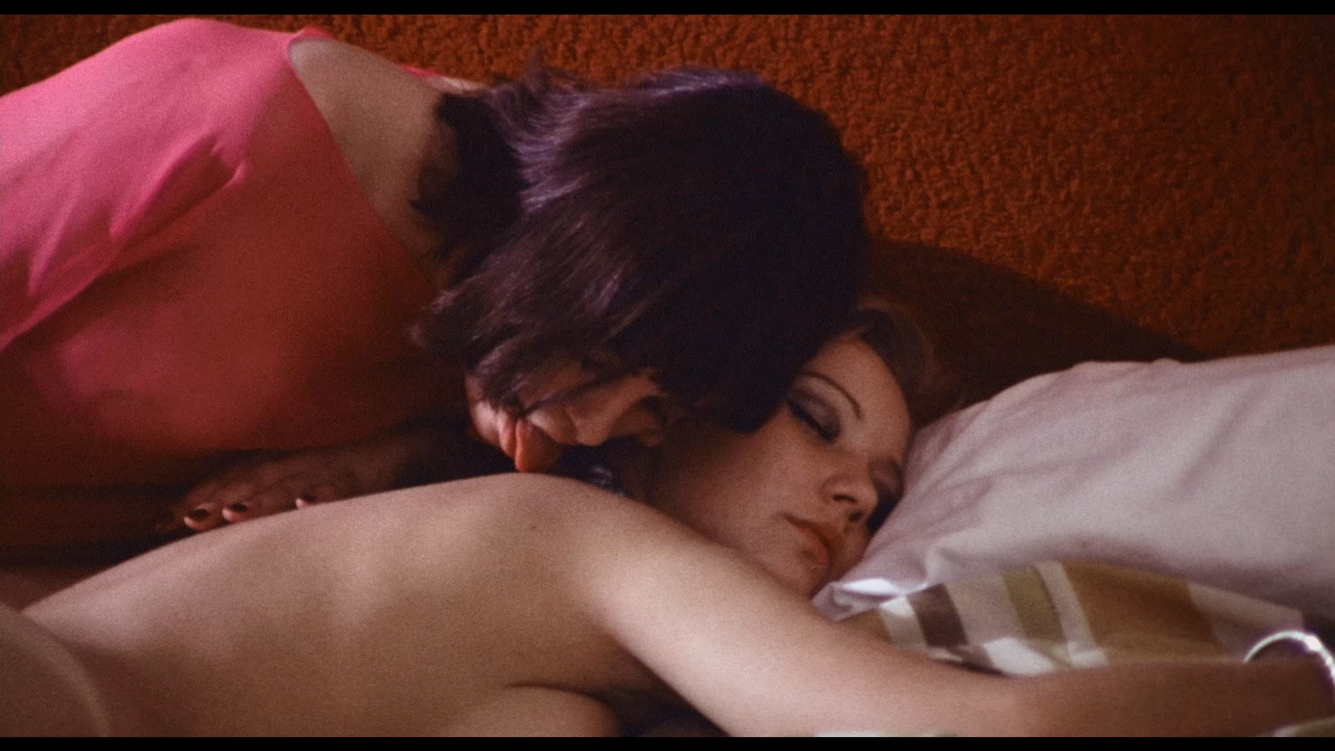 That brings us to 2025 with the debut Blu-ray from Delirium Home Video, an offshoot of Delirium magazine. As expected it comes from the same excellent restored source as the European Blu-ray and contains both cuts, defaulting to the uncut one on playback with the soft cut in the extras. For some inexplicable reason the uncut version only has the English dub (DTS-HD MA 2.0 mono or a 5.1 option) with optional English subtitles, while the soft one is Germany only (DTS-HD MA 2.0 or Dolby Digital mono) with optional English subtitles. The uncut version also comes with a new audio commentary by Troy Howarth who ably sifts through the morass of body hair to discuss the film's place in Franco's career, his up and down professional relationship with Dietrich, the question of whether this qualifies as a porn film, the delirious connections to the filmmaker's other work and its clear melancholy streak, the teeny tiny crew with Franco himself operating the camera, the breakup of Romay's marriage, and lots more. Also included are the English home video and European theatrical trailers (the latter in German with burned French and Italian subs), plus the Franco-Dietrich interview featurette now a bit longer at 11m46s to incorporate a little bit with Romay herself as they all talk about shooting in Zurich, the supposedly covert creation of this as a bonus movie handed to Dietrich when it was done, the lack of appreciation shown to it at first, and its eventual rise in critical and fan assessment.