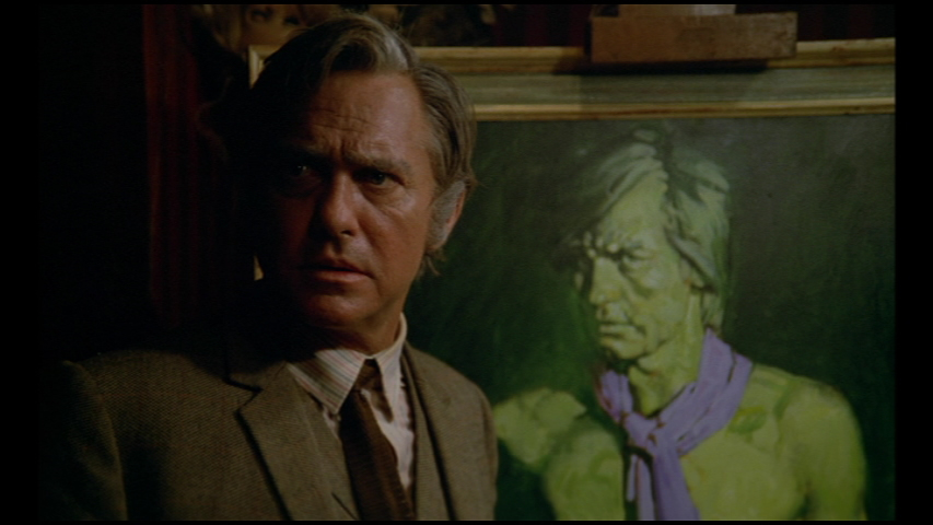 Shuffling the narrative a bit, the film opens in the '60s with Dorian murdering an offscreen victim in his attic and washing blood of his hands before sulking moodily in front of a fireplace. Through flashback we then leap back to the roaring '20s where Dorian attends a drag cabaret act with his painter friend Basil (Todd), who introduces him to the married but exceedingly amoral libertine pair of Henry Wotton (Lom) and Alice (Rohm). Dorian gives in to Basil's pleas to paint his portrait, and upon seeing its completion, Dorian verbally offers to exchange his soul for the picture to grow old instead of himself. Meanwhile he embarks on an ill-fated romance with an aspiring Shakespearean actress, Sybil Vane (softcore starlet Liljedahl), and as time passes he becomes increasingly decadent, whether getting groped by a middle-aged matron in a horse stable, cruising the local docks and bathrooms, dabbling in covert steam room trysts, or luring married woman to their doom. When someone finally figures out exactly why Dorian keeps looking so gosh darn youthful all these years, all of his demons finally rise to the surface...