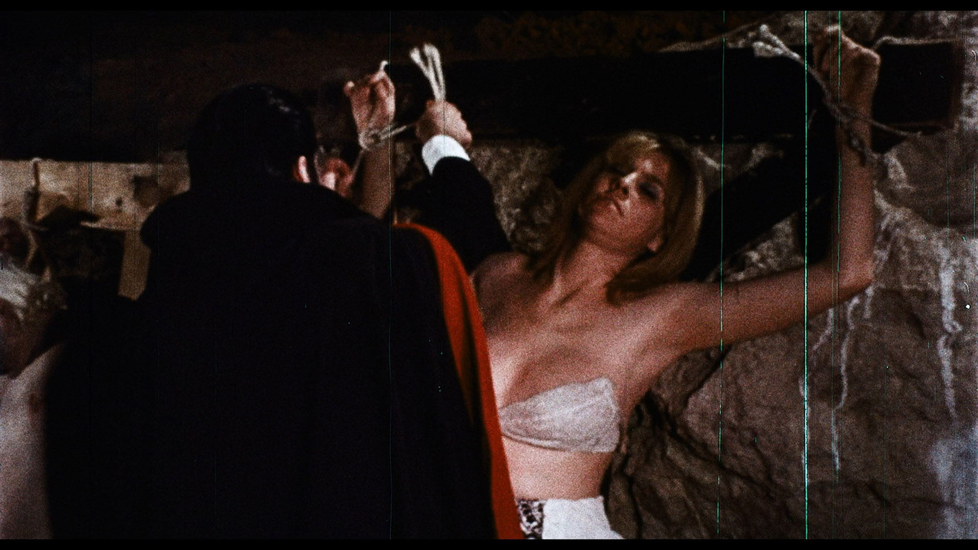 the English SDH subtitles for this thing given how much of the looped dialogue is unintelligible. It's fun to see them try valiantly though, interpreting Dracula's early greeting to Mike as "Oh, what a dick" and transcribing "Look at my thing" as "Look at my team." A very well-informed audio commentary by Vintage Texploitation's Dennis Campa with contributions by Melinda Belles is largely focused on Boyd (including his legal issues after this) but also covering the premiere in South Carolina, the narration by Ron Scott, possible connections to Bat Pussy, and points of interest about the locations.