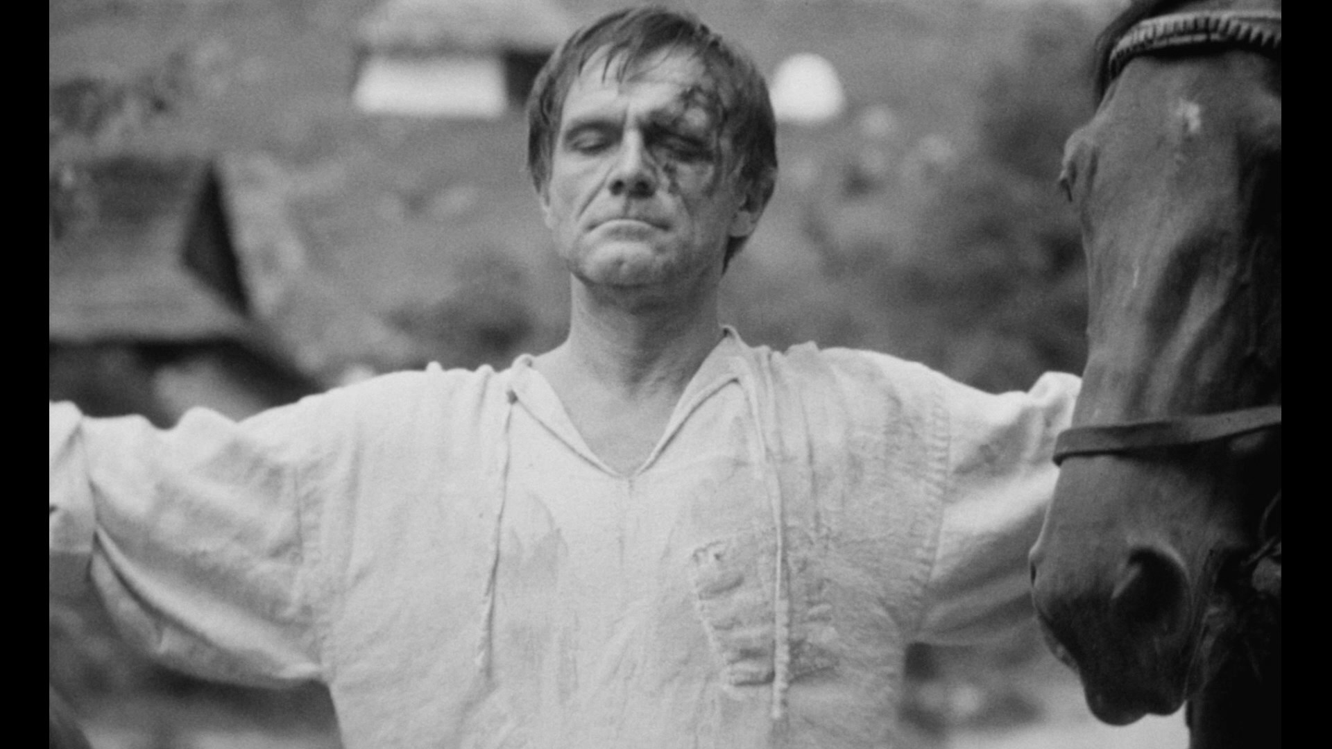 evocative and often stunning medieval gem from the height of Slovak cinema, Dragon's Return (Drak sa vracia) is a haunting experience worthy of more familiarity among English-speaking viewers. Veteran film and TV actor Radovan Lukavský stars as Dragon, the nickname given to ostracized potter Martin Lepis who returns to his village after being exiled for causing a drought, at least according to local beliefs. Now sporting an eye patch and scar, he finds that his love Eva (Vásáryová) is now married to Simon (Valach), who is assigned to accompany and keep a watch on Dragon when he volunteers to rescue the town's cattle from a raging forest fire. Dragon hopes to regain his land but is threatened with the burning of his home if he doesn't return the cattle in time, just one of the harsh, irrational demands of a town where superstition and belief in witchcraft are the order of the day.