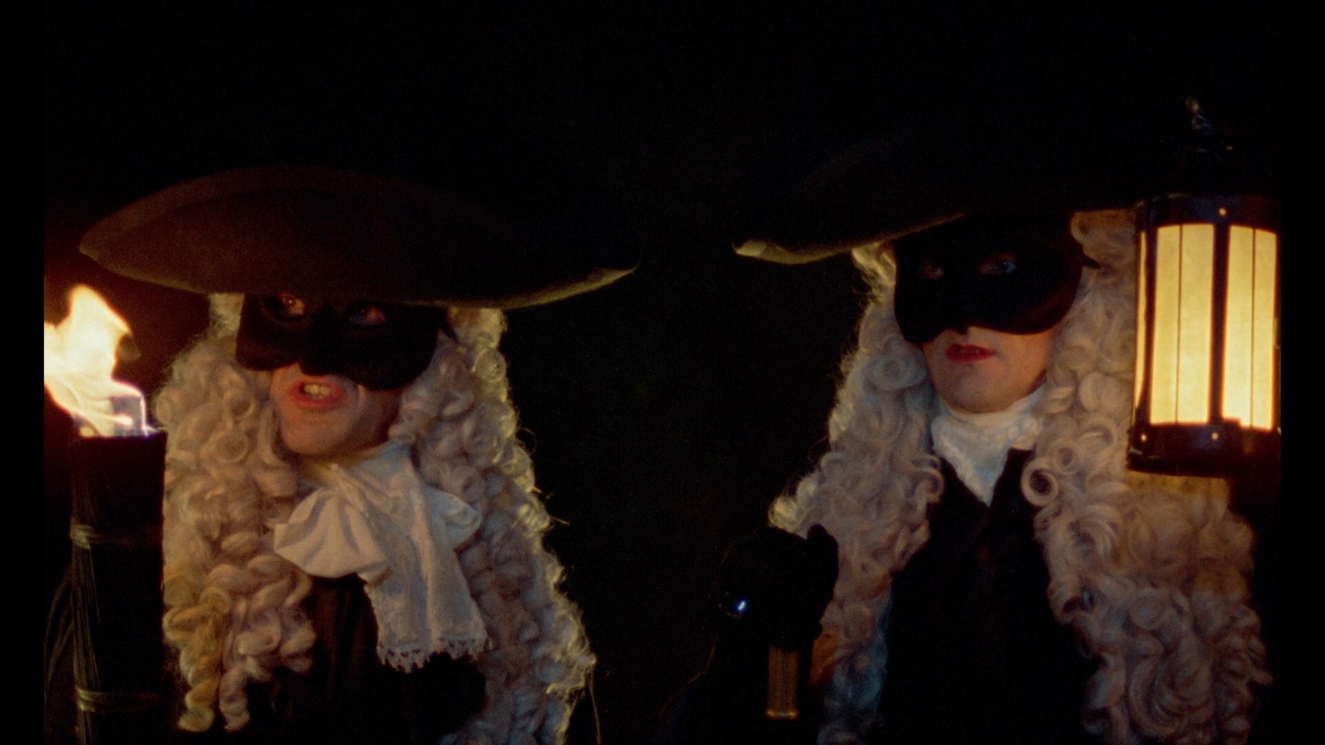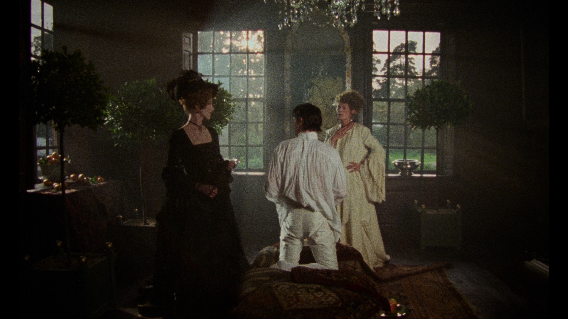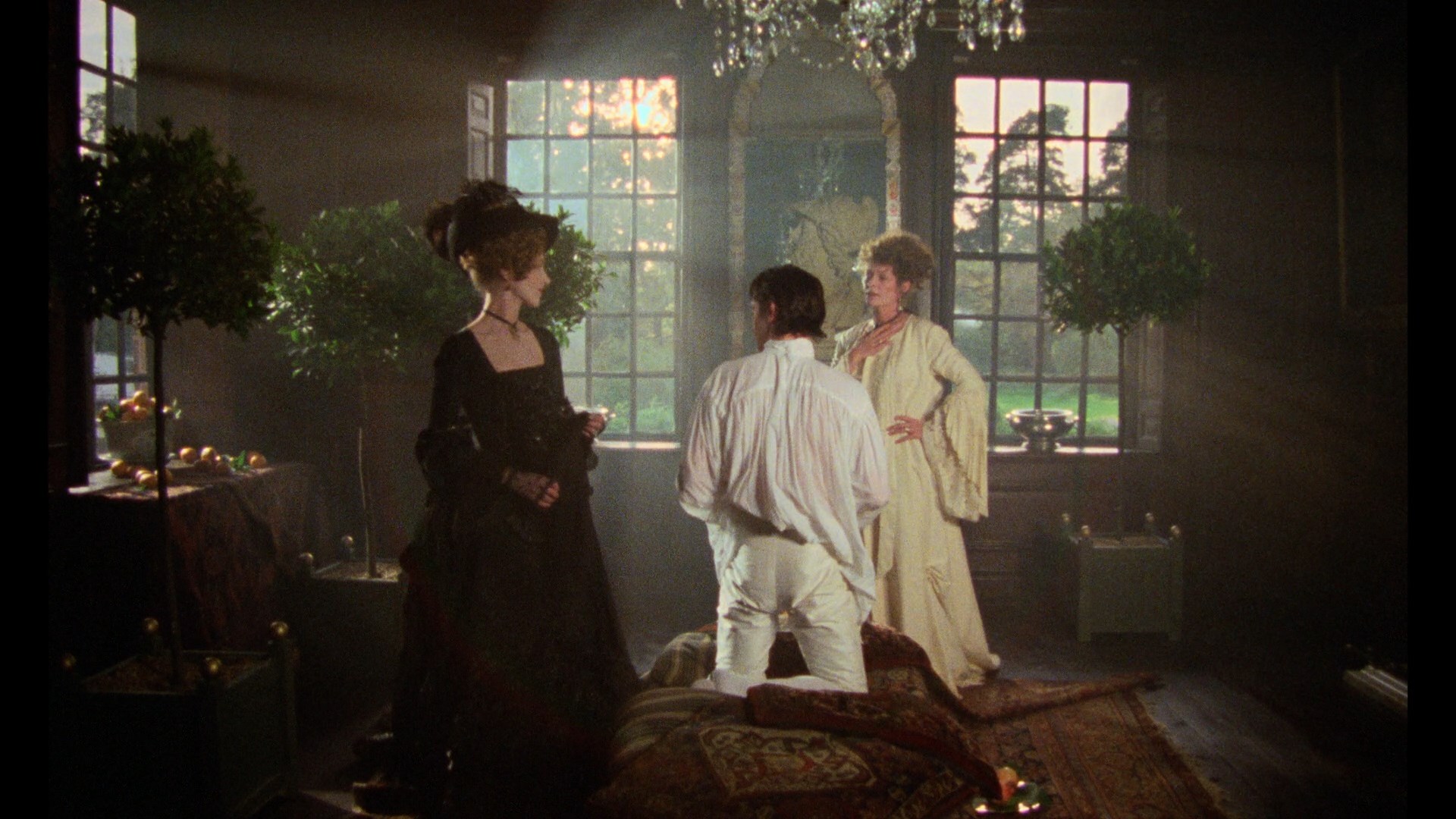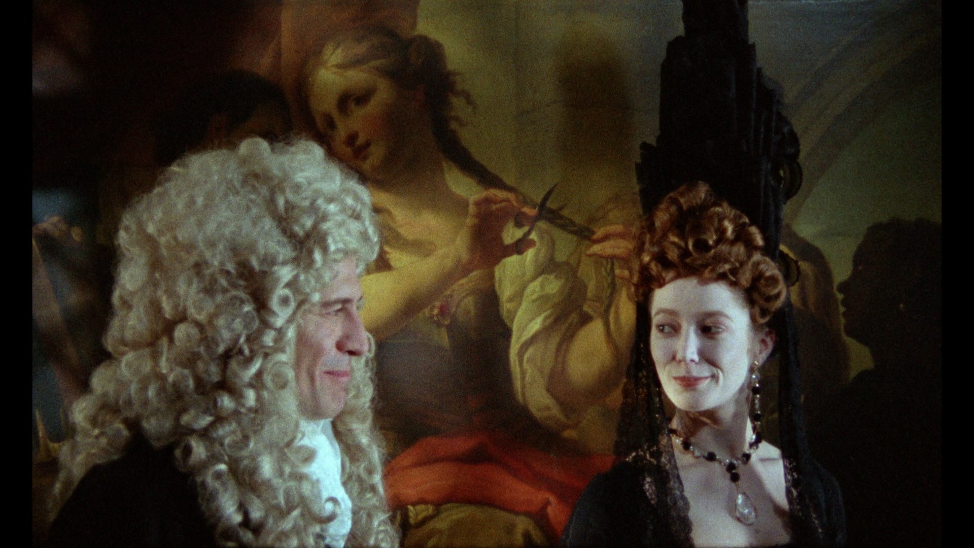 Amsterdam to his inability to swim and her coping with learning about romantic heartbreak the hard way. The 2002 Nyman interview is carried over here, while legendary novelist and essayist Angela Carter provides an outstanding analysis of the film from a 1982 episode of the Channel 4 series Visions. She's so magnetic and full of life here that it seems almost impossible to think that she would be gone a decade later. Two Greenaway shorts previously available on DVD collections are here since they bear aesthetic connections to the main feature: 1976's H Is For House (8m48s), a stylized inventory of a family's countryside residence, and 1978's A Walk Through H (42m13s), a quirky chronicle about an ornithologist and a series of bird-fixated drawings accompanied by an early Nyman score. The latter short appears to be a recent restoration and looks much better here than before. Previously available on the BFI's highly recommended double Blu-ray set The Best of COI: Five Decades of Public Information Films, 1981's Insight: Zandra Rhodes (14m39s) is a very Greenaway-esque portrait of the famed U.K. fashion designer at work and traveling abroad as he dives into her creative process. It's one of the flashiest things he ever directed with some visual and aural ideas that would later turn up again in The Pillow Book. The first pressing also comes with a 40-page insert booklet featuring new essays by Greenaway, Simon Barker, William Fowler and Charlie Bridgen, plus notes on the bonus films by William Fowler and Josephine Botting. The same core extras were ported over for an American Blu-ray from Kino Lorber and a French Blu-ray release from Le Chat Qui Fume, who also issued a limited two-disc edition with a UHD that sold out fairly quickly. Comparison grabs are below, and as this is one of the label's very few releases that employs HDR, it looks a bit darker, richer, and more detailed (thus, also with more grain) compared to its predecessors. Le Chat Qui Fume UHD (France)