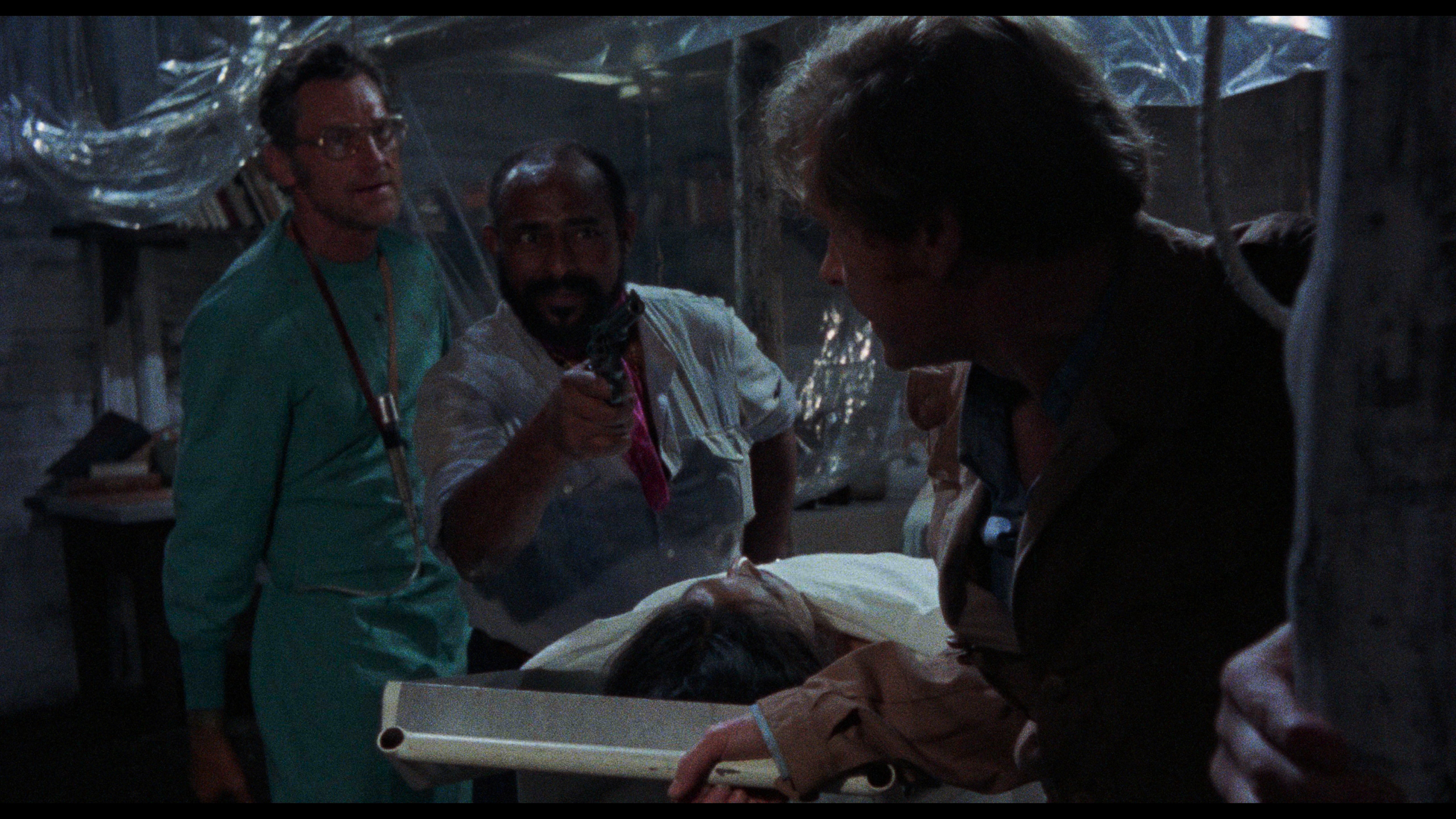 leaving behind hints of ties to an East Indies cannibal god named Kito. Dr. Peter Chandler (Zombie's McCulloch) and medical/anthropology specialist Lori Ridgeway (New York Ripper's Delli Colli) team up with bitchy reporter Susan Kelly (Buchanan) to head to the remote island that's reputed to be Kito's main stomping grounds, and as soon as Lori doffs her clothes for a shower, she's confronted with a maggot-infested severed head in her bed with a bloody symbol of Kito drawn in her sheets. Aiding their quest is Dr. Obrero (O'Brien), who is far more than he first appears -- and as you can probably guess from the American title, he has a very bloodthirsty operation going deep in the jungle.