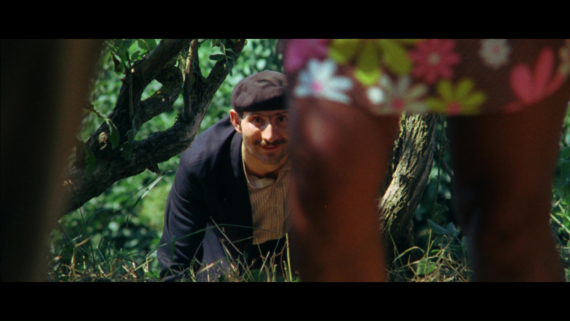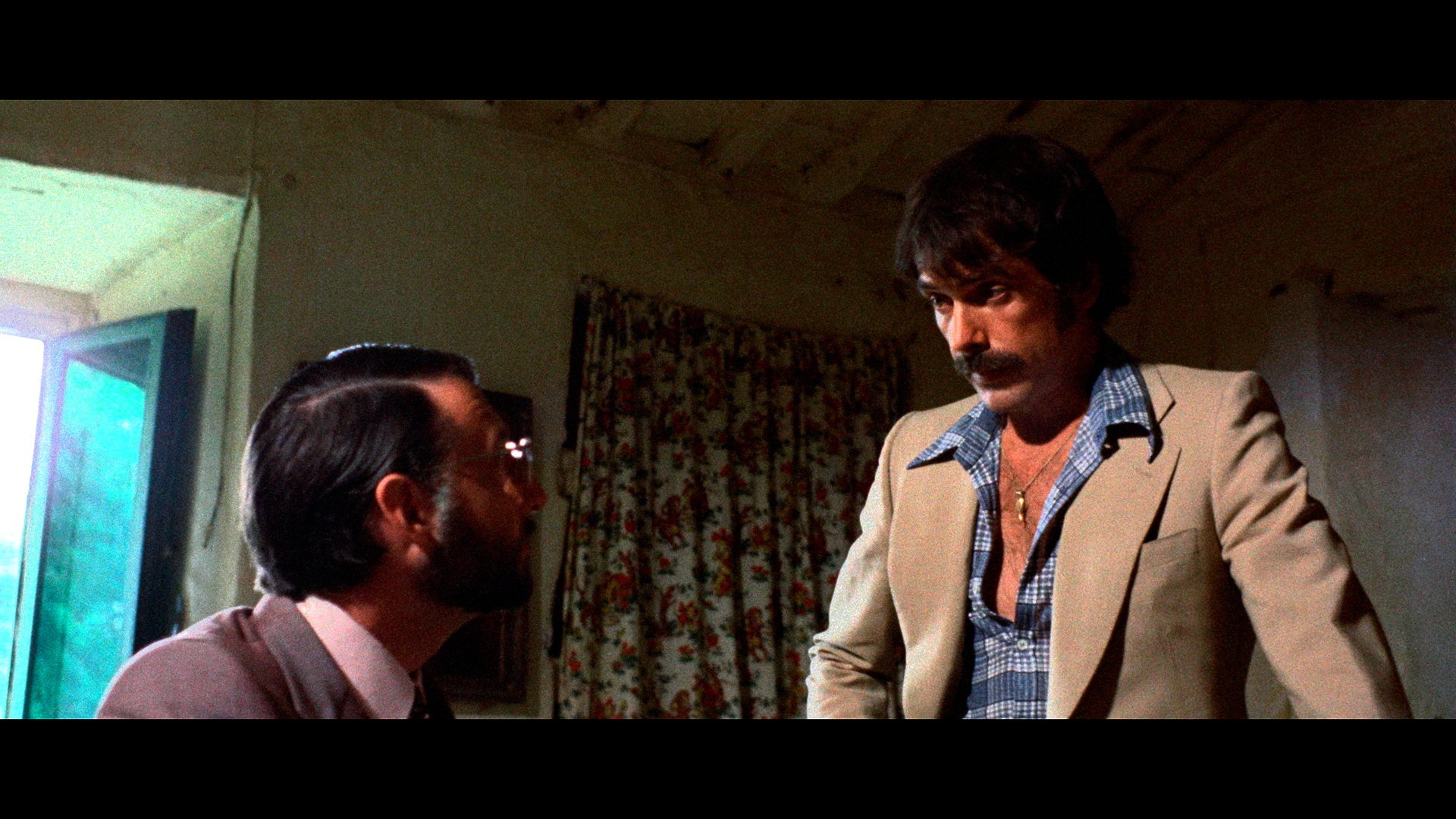 In 2025, Arrow revisited Fulci's film as a 4K UHD edition featuring a fresh restoration from the Techniscope negative with the HDR10-compatible Dolby Vision color grade giving it a much more intense with punchier flesh tones and more pop in the outdoor scenes. The bump in detail means the already rough opticals at the beginning are even more coarse, but once Fulci's directing credit appears things smooth out considerably. The LPCM 1.0 mono tracks (English, Italian, optional SDH or translated subtitles) both sound solid and are about the same as the previous release. Some comparison grabs are below, though the Dolby Vision is impossible to accurately frame grab so the whites look more blown out than they are during playback; however, it's included here so you can get an idea of the color changes. All of the prior Arrow extras are ported over here, and wisely the trailer has finally been included as well. The big new extra here is the Bouchet interview "Who Killed Donald Duck?" (18m31s), which finds the relaxed and cheerful star looking back at making the provincial giallo and playing around with her giallo persona a bit under Fulci's guidance and getting to share the screen with European box office favorite Milian.