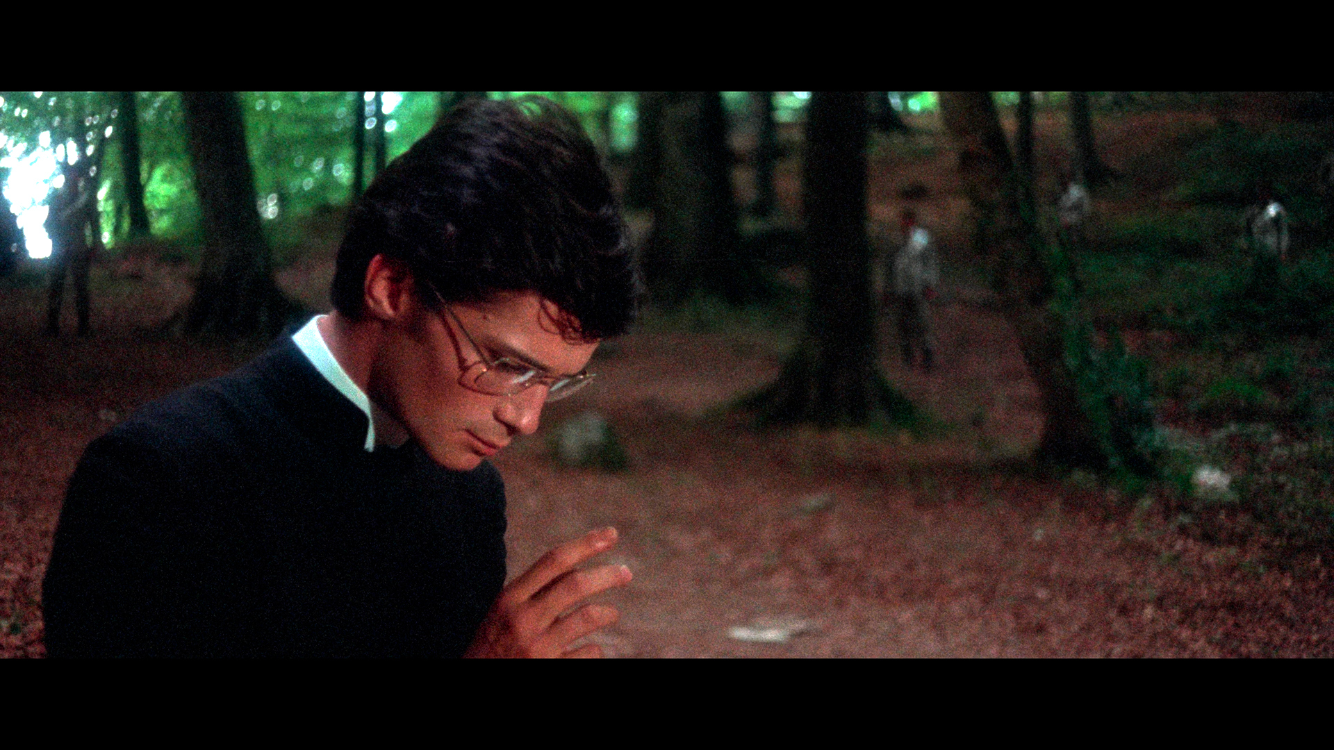 for the Italian track, while English SDH ones can be played for the English one; note that both are locked to be switched on or off via the main or pop-up menus for their respective audio versions though and can't be switched on the fly. The film can also be played with a new audio commentary by So Deadly, So Perverse: 50 Years of Italian Giallo Films and Splintered Visions: Lucio Fulci and His Films author Troy Howarth, who ranks this among his favorite films and does a skillful job of laying out details about the film's shooting locations, complex attitudes about Catholicism, cast and crew backgrounds, and the animosity between two of the actors that turned physical during the finale.