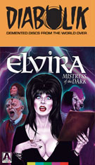 that had been flourishing on TV since the '50s got a big boost in the Reagan era with the arrival of Elvira's Movie Macabre, with the sassy, very SoCal horror hostess played by actress and model Cassandra Peterson becoming a huge pop culture sensation. Soon she was guest starring in TV shows, doing beer commercials, and popping up on late night talk shows, which meant it was only a matter of time before she got her own big screen vehicle. That came to pass with Elvira, Mistress of the Dark, a high-profile release from New World Pictures, which opened in the Fall of '88 on the heels of some really bizarre fare from the indie studio like Slugs, Dead Heat, and Return of the Killer Tomatoes. Though it did reasonable business, the film didn't set the box office of fire but went on to amass a big cult following on cable TV and VHS where Elvira's grand persona always seemed most at home in the first place.