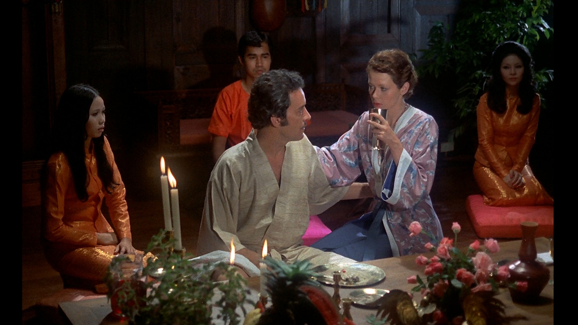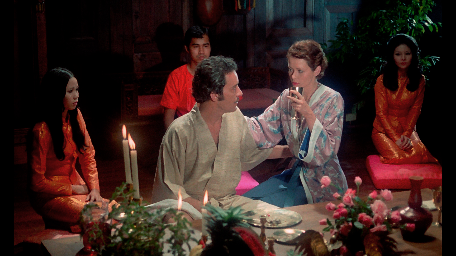 the initial installment. Here Emmanuelle goes to visit Jean in Hong Kong after a long absence and is intrigued by the arrival of Christopher (Lagache), a young pilot who accompanies her for an erotic acupuncture session. Jean’s girlfriend, Anna-Maria (Rivet), wants in on the action, too, so the three all go for a group massage involving Laura Gemser herself.