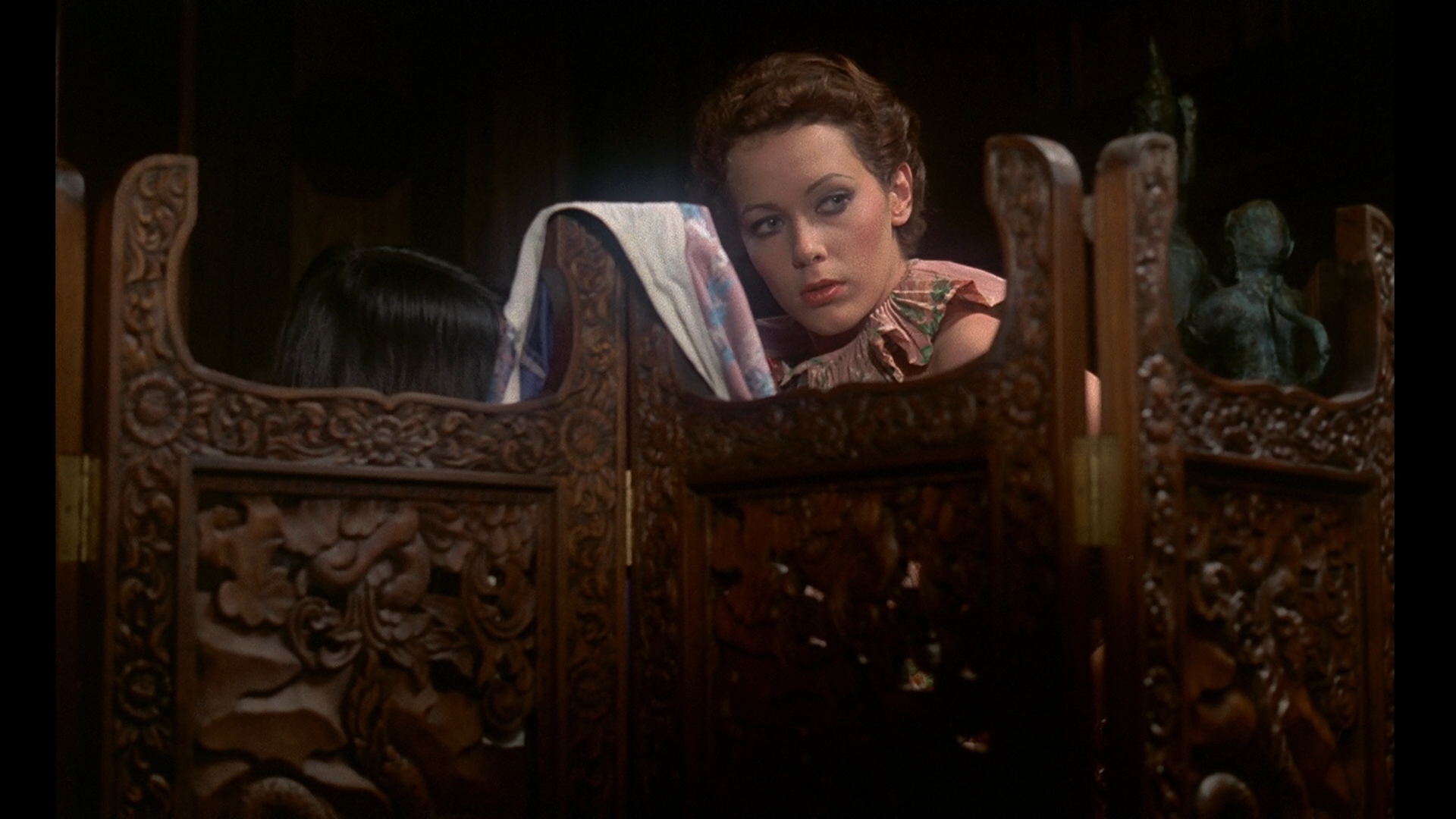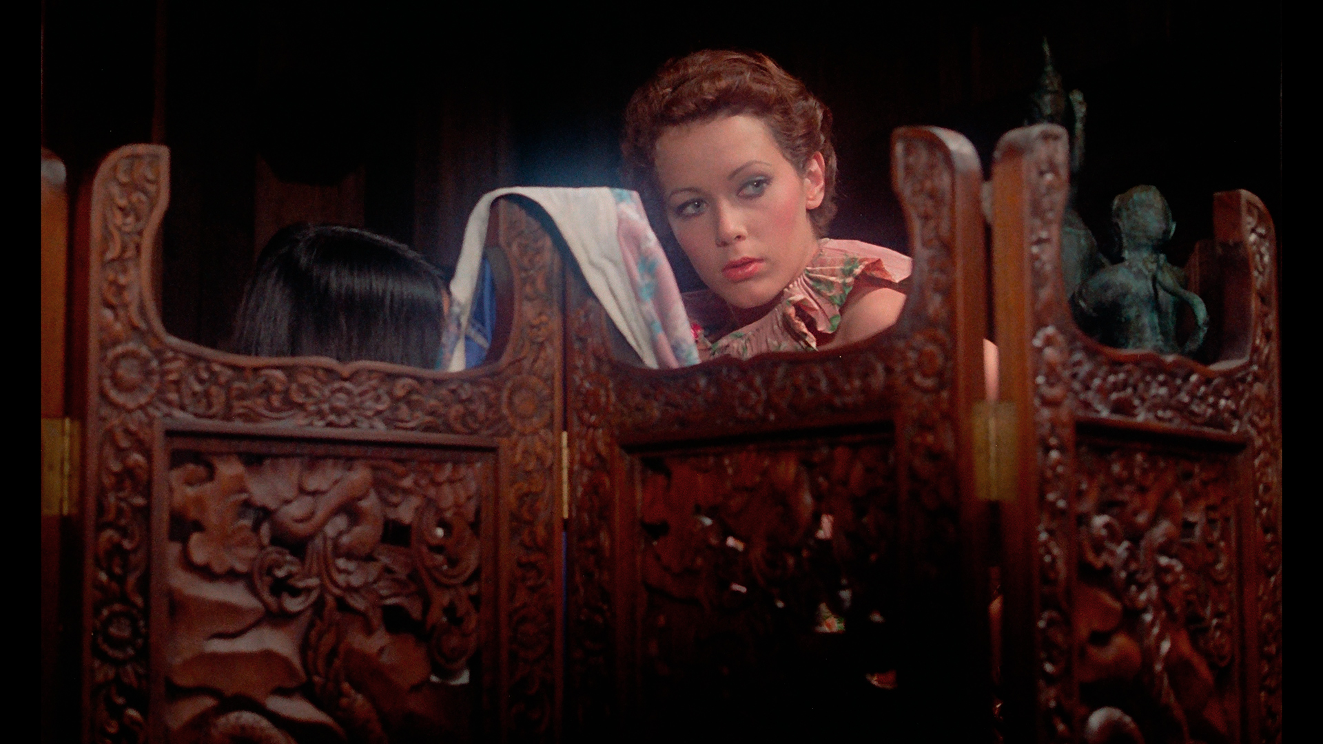 trailers and “The Joys of Emmanuelle, Part 1” are ported over here (but not the director-producer chat from the Kino), while many new extras are added as well. In “A Slightly Scandalous Character” (21m35s), Green recalls her path to becoming an actress despite wanting to be a dancer thanks to the involvement of Robert Bresson and how she ended up appearing in this film which exploded in public awareness more than she expected. In “Producing Emmanuelle” (29m51s), Rousset-Rouard