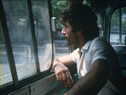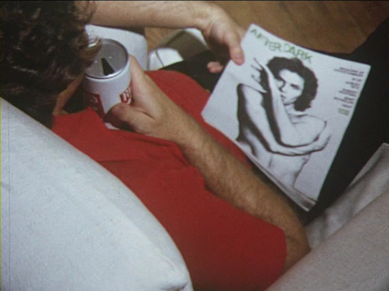 The surrealism shifts into overdrive with the third short, "The Second Coming," a spooky and explicit 14-minute study in religious provocation from 1972 in which a group of middle-aged men around the city are drawn together to a church. Inside they gather in the darkness to observe a young man crucified to a wooden cross, leading to a climax that outdoes a similar outrageous highlight from Paul Verheoven's The Fourth Man. It's sort of the darker cousin to "Encounter" from the previous collection, twisting the same premise in a much more shocking direction. Running the same amount of time is the flat-out hardcore "Daydreams from a Crosstown Bus" (also from '72), in which two New Yorkers (Joe Leone and Richard Perez) spy each other during a bus commute and have alternating fantasies about hooking up in an apartment. Again it's an interesting erotic daydream wtih some striking visuals, such as the twosome coupling behind a misty shower curtain. By far the goofiest contribution, "Mumbo Jumbo," features De Rome himself, clowning around with some exaggerated erotic sculptures, flashes of pop culture photos including Lena Horne(!), and of course, guys misbehaving in the privacy of their own homes. It's a wild 16-minute ride to be sure and probably the closest indication of what Russ Meyer might have been like as a gay man, if you can wrap your head around that idea. On the other hand, the slightest film is the nine-minute "Green Thoughts," in which actor "Derek Turner" decides to "go green" by finding a whole new way of communing with nature.
